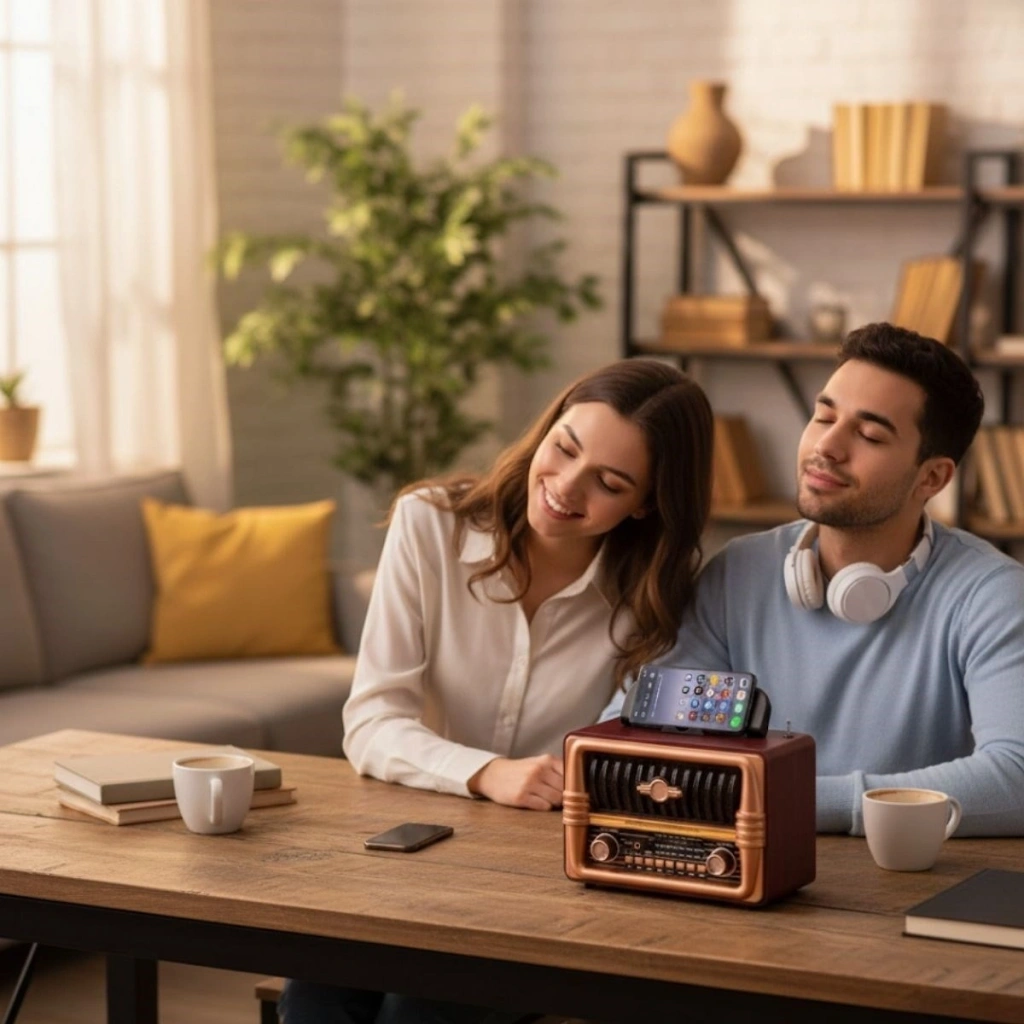 Mey İthalat® Nostaljik Retro Bluetooth - FM Radyo, USB ve Bluetooth Kablosuz Hoparlör