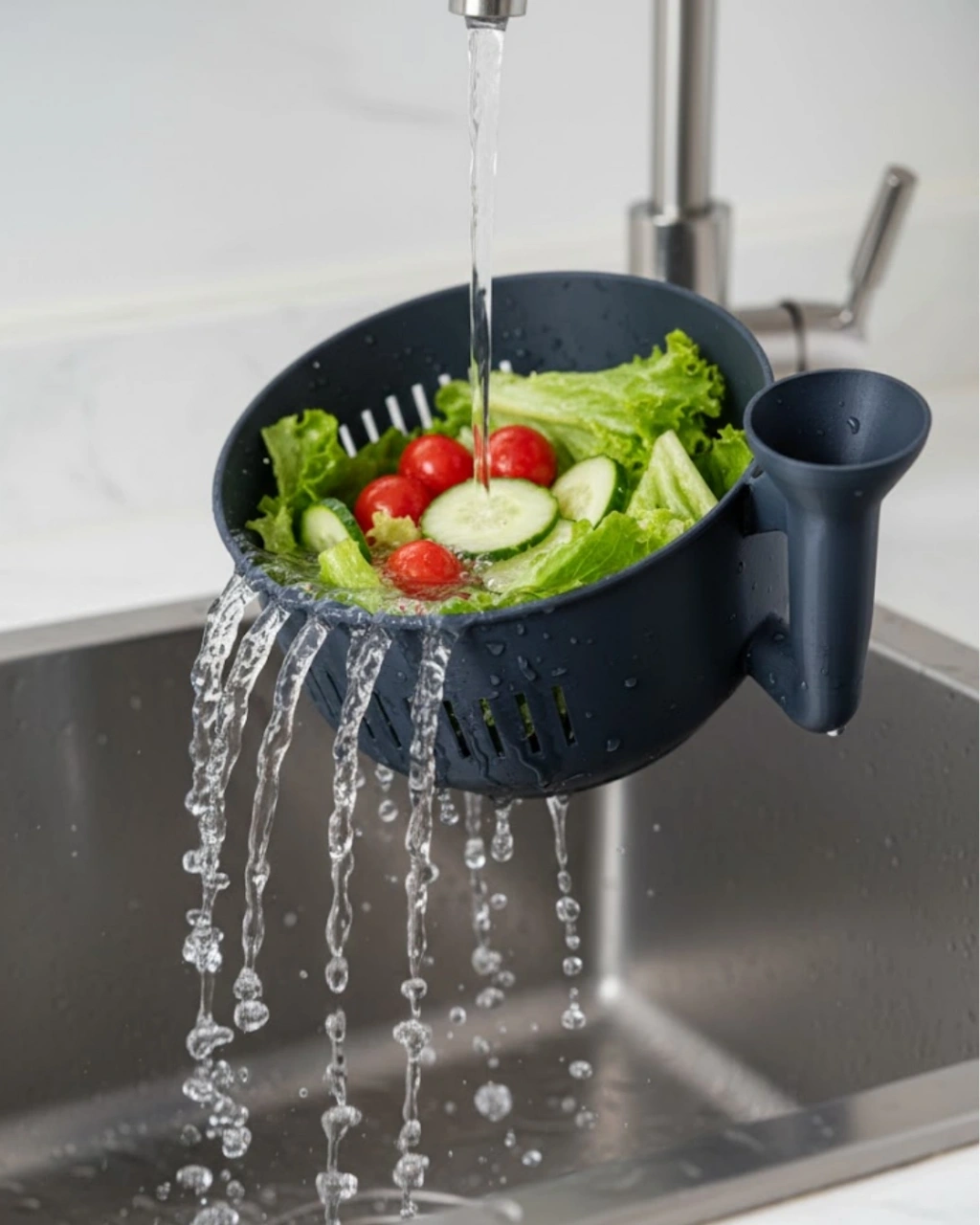 Mey İthalat® Ergonomik Saplı Sebze Süzgeçli Yıkayıcı Çok Amaçlı Mutfak Ürünü