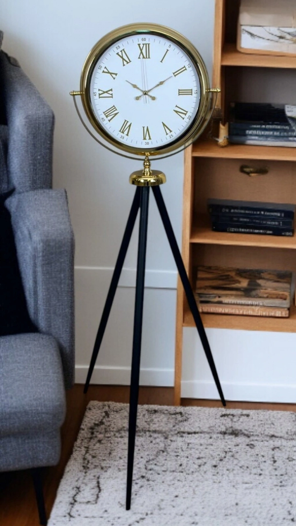 Mey İthalat® Gold Göz Alıcı Tripod Ayaklı Duvar Saati