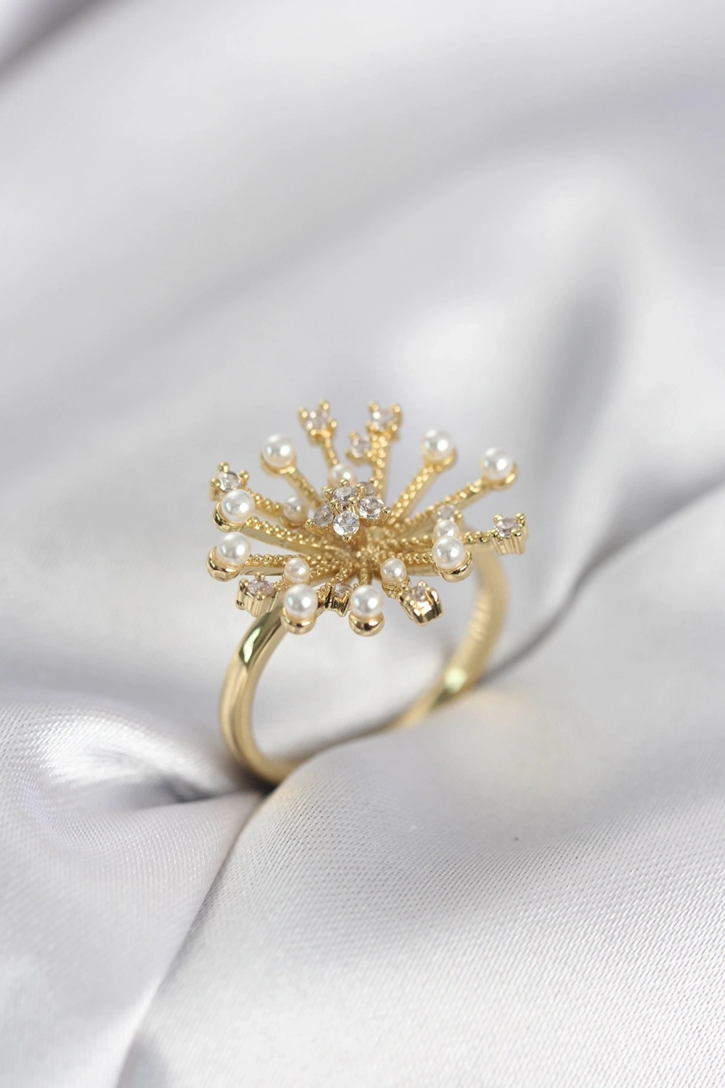 Mey İthalat® Gold Renk Karahindiba Model Zirkon Taşlı Kadın Yüzük