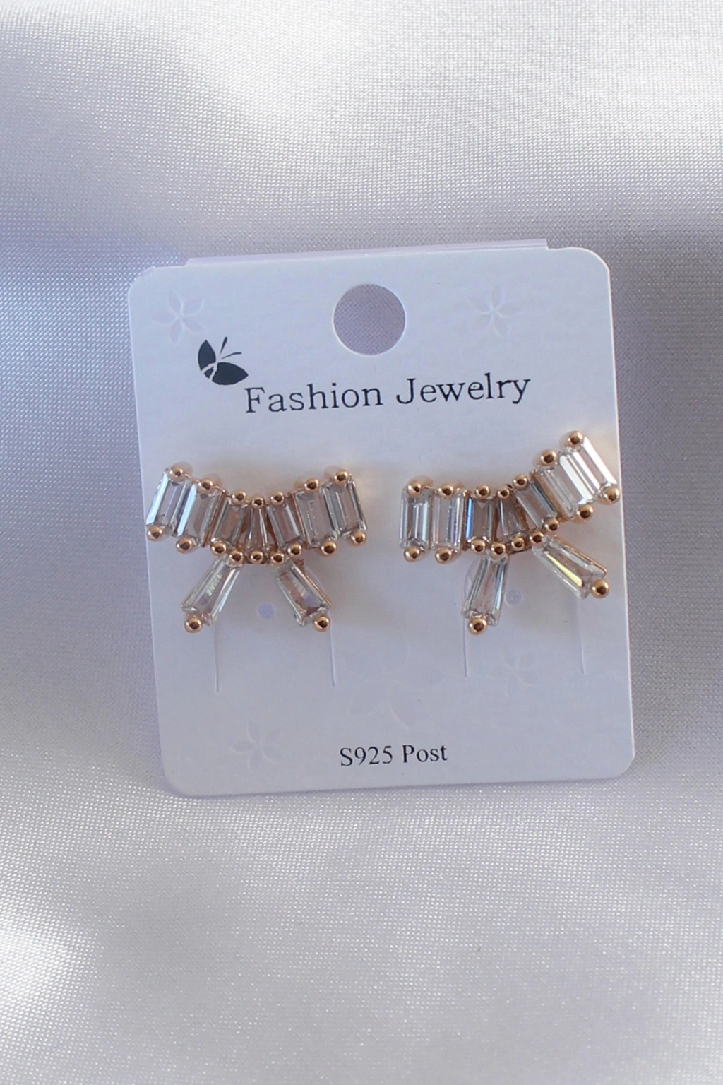 Mey İthalat® Gold Renk Kurdele Model Zirkon Taşlı Kadın Küpe