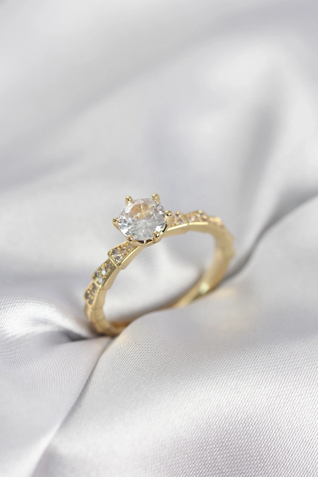 Mey İthalat® Pirinç Gold Renk Su Yolu Zirkon Taşlı Model Kadın Yüzük