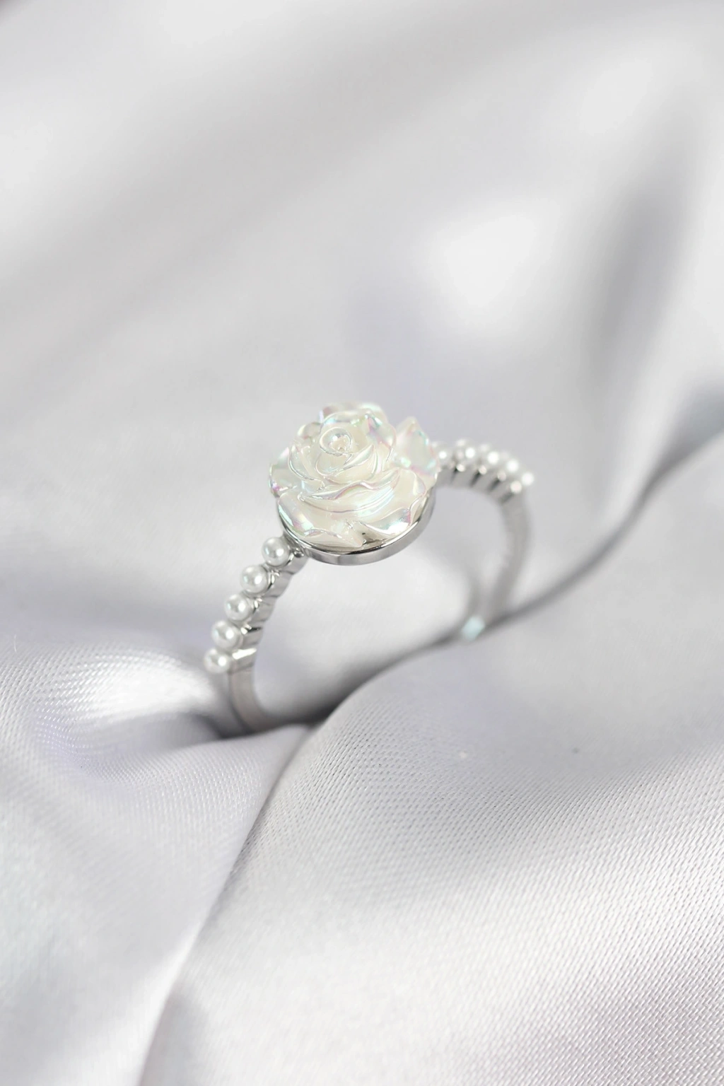 Mey İthalat® Gümüş Renk Gül Model İncili Kadın Yüzük