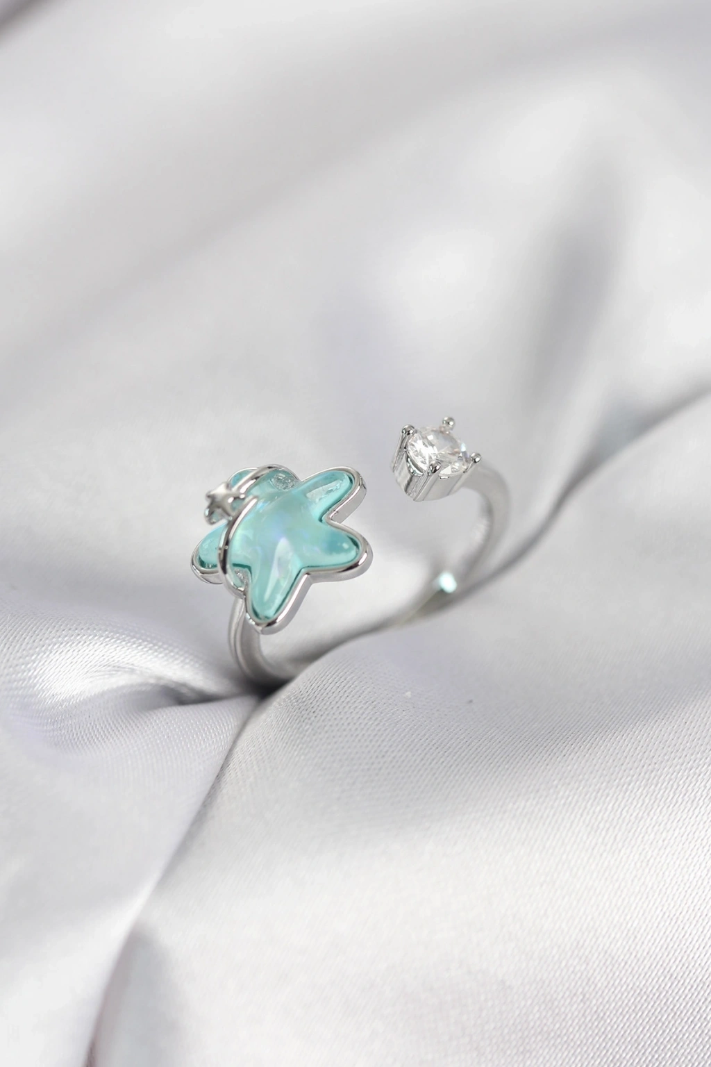 Mey İthalat® Gümüş Renk Turkuaz Yıldız Model Kadın Yüzük