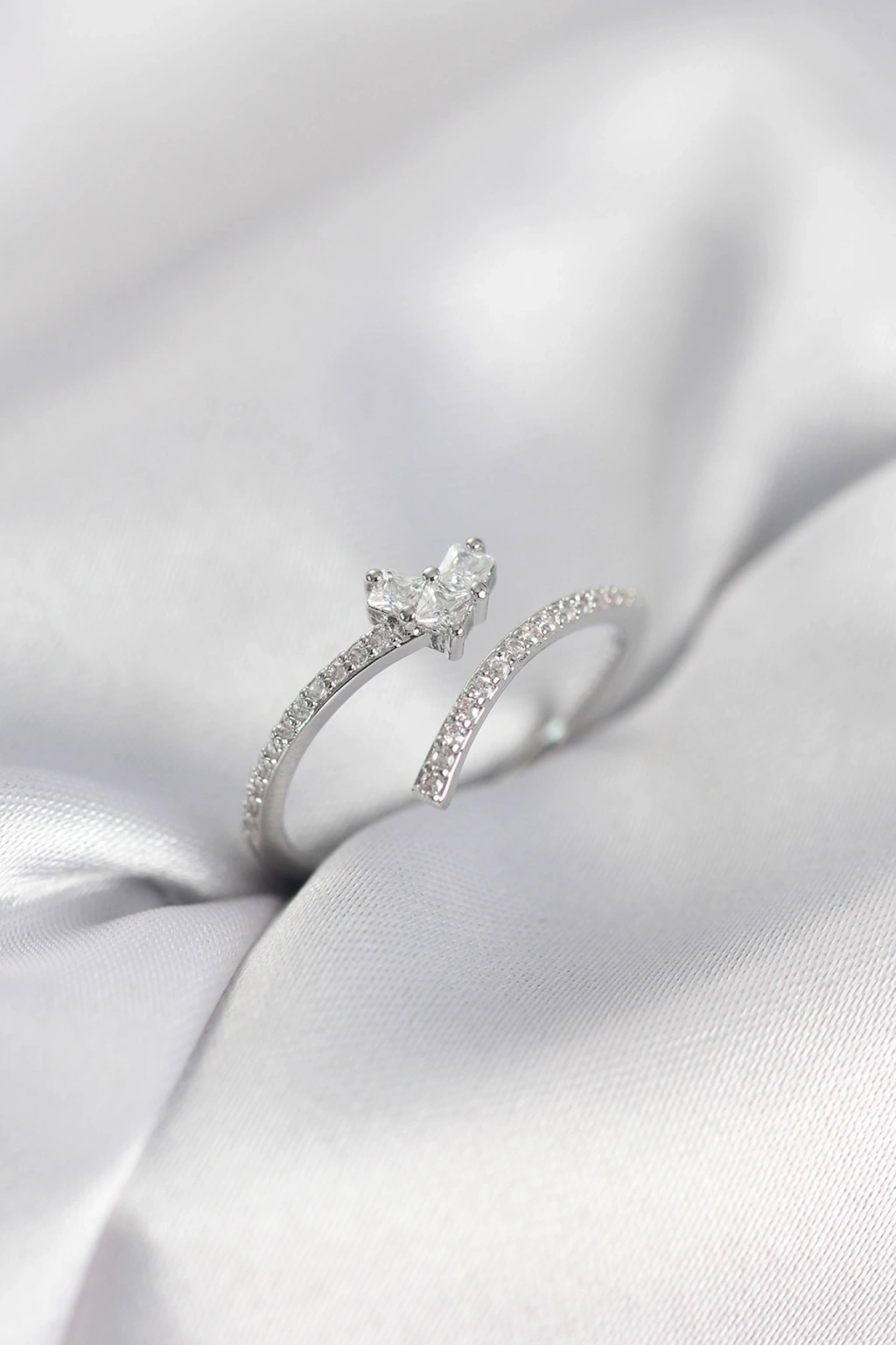 Mey İthalat® Pirinç Gümüş Renk Zirkon Taş Detay Kelebek Model Kadın Yüzük