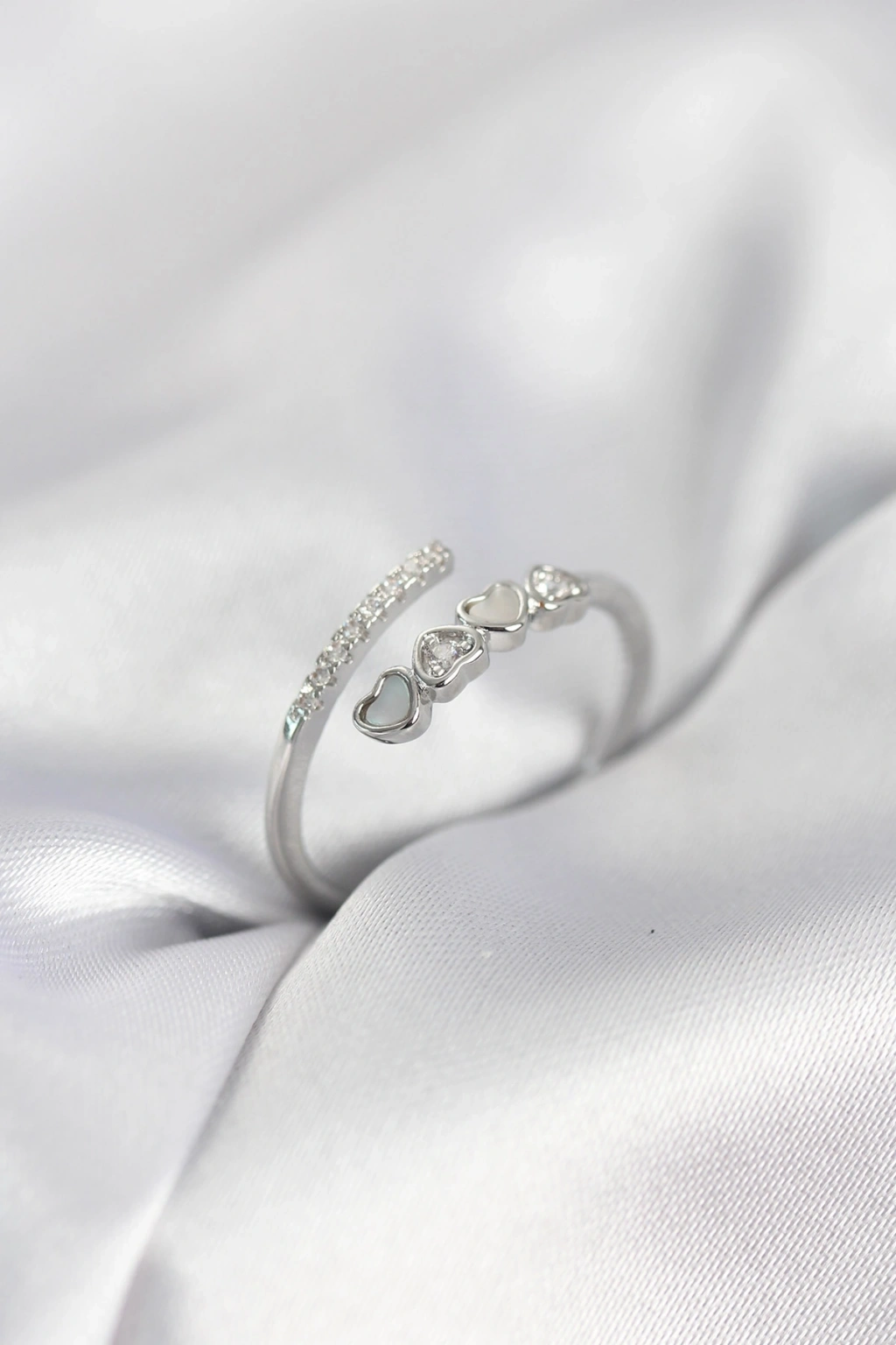 Mey İthalat® Pirinç Gümüş Renk Sedefli Zirkon Taşlı Su Yolu Model 2li Görünüm Ayarlanabilir Yüzük