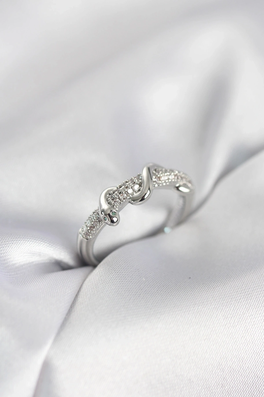 Mey İthalat® Gümüş Renk Zirkon Taşlı Sarmal Yılan Model Kadın Yüzük