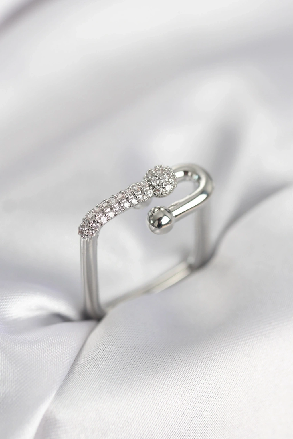 Mey İthalat® Gümüş Renk Metal Taşlı Model Ayarlanabilir Kadın Yüzük