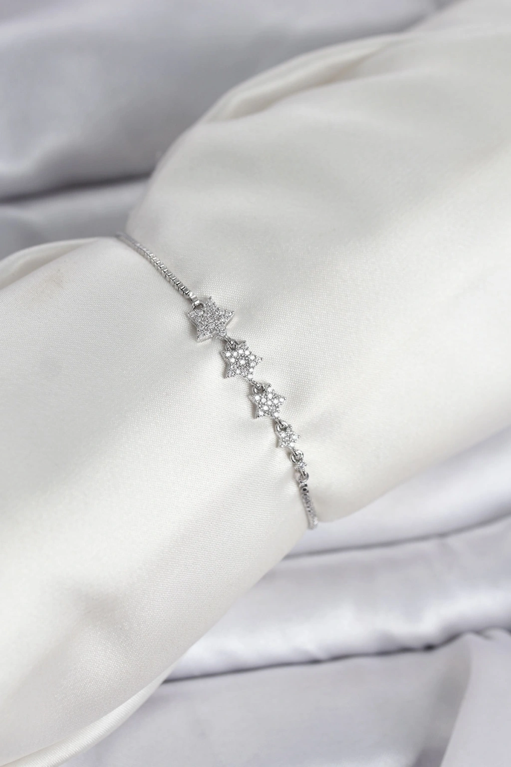 Mey İthalat® Gümüş Renk Kutup Yıldızı Model Zirkon Taşlı 3'lü Kadın Bileklik Kombini