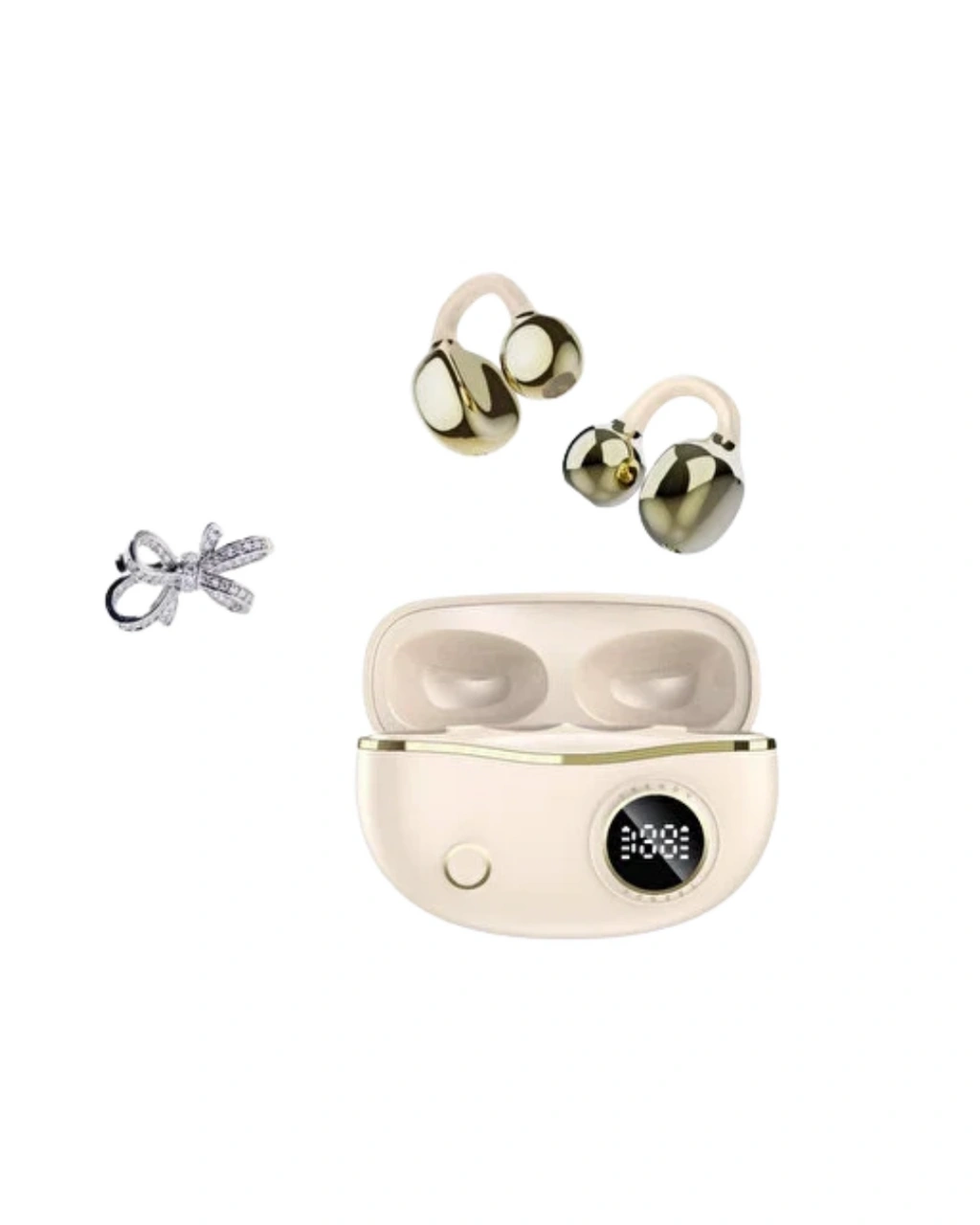 Mey İthalat® Kablosuz Bluetooth Kulaklık Kulak Klipsli Şık Tasarım 2 Kurdele Küpe Hediyeli