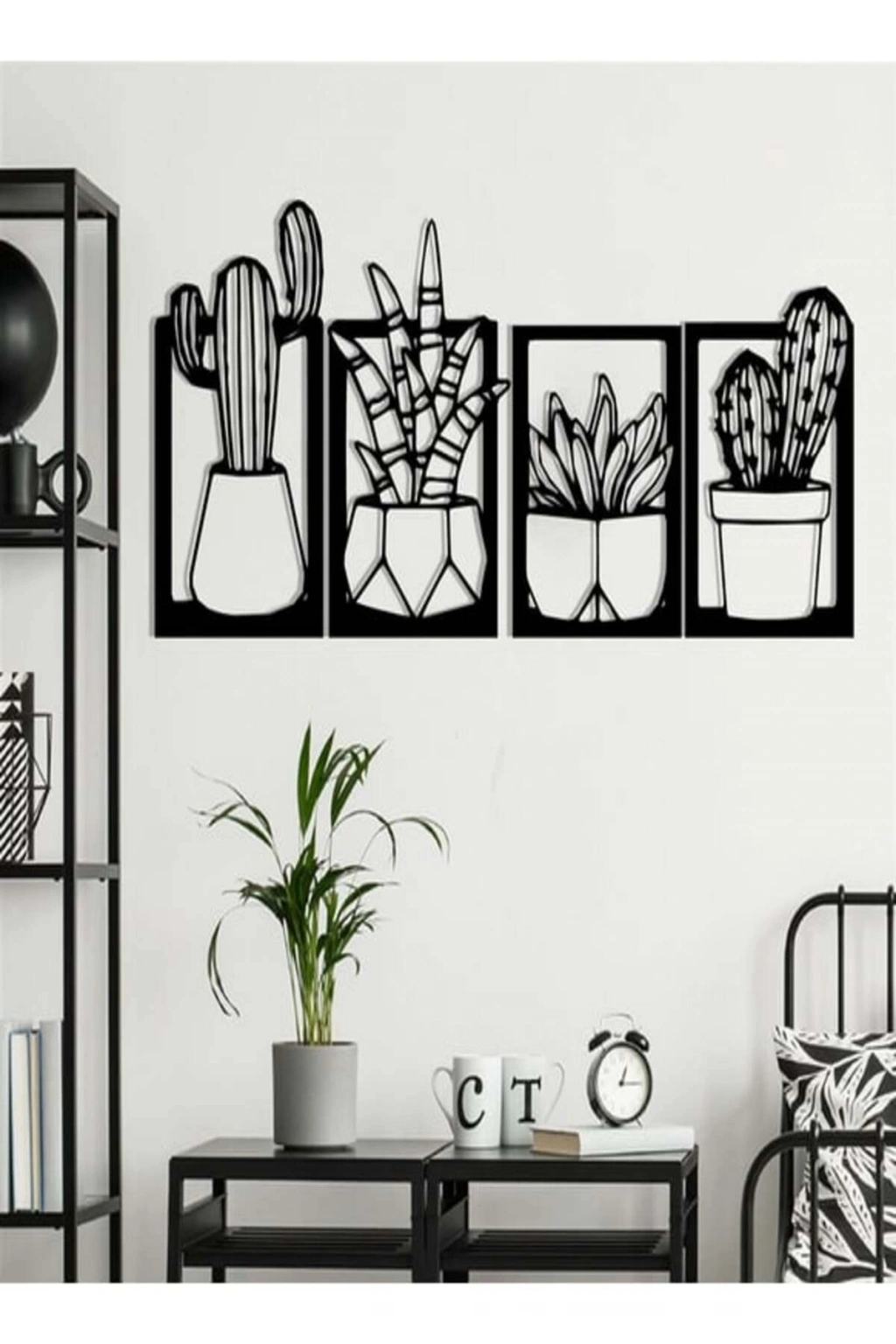 Mey İthalat® Kaktüs Çerçeve Serisi – Ahşap Duvar Dekoru (4’lü Set)