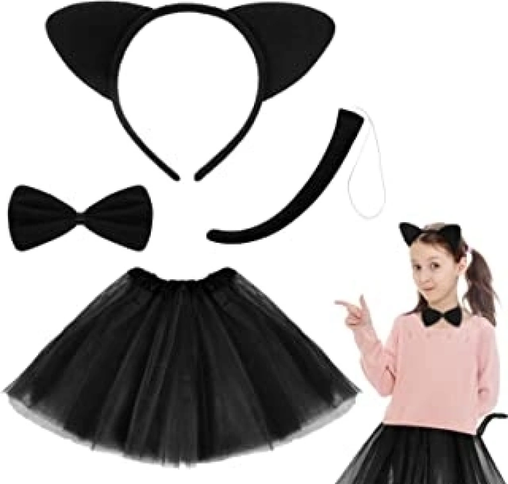Mey İthalat® Kedi Eteği Tacı Kuyruğu ve Papyon Seti Siyah Renk Çocuk Boy
