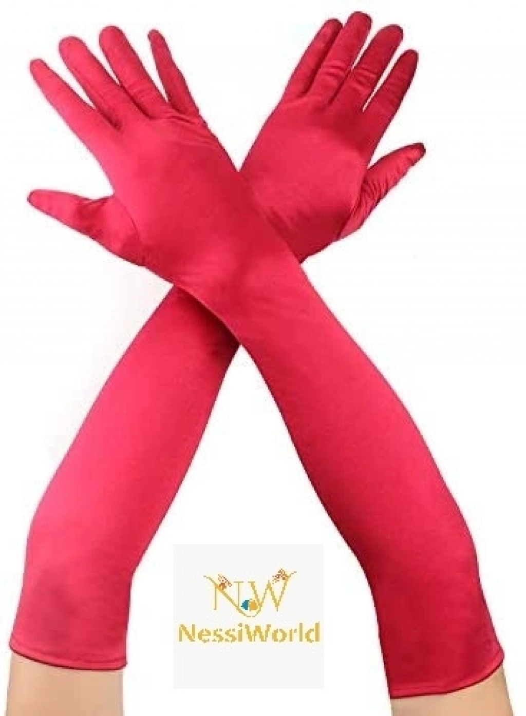 Mey İthalat® Kırmızı Renk Dirseğe Kadar Uzun Kumaş Eldiven 40 cm