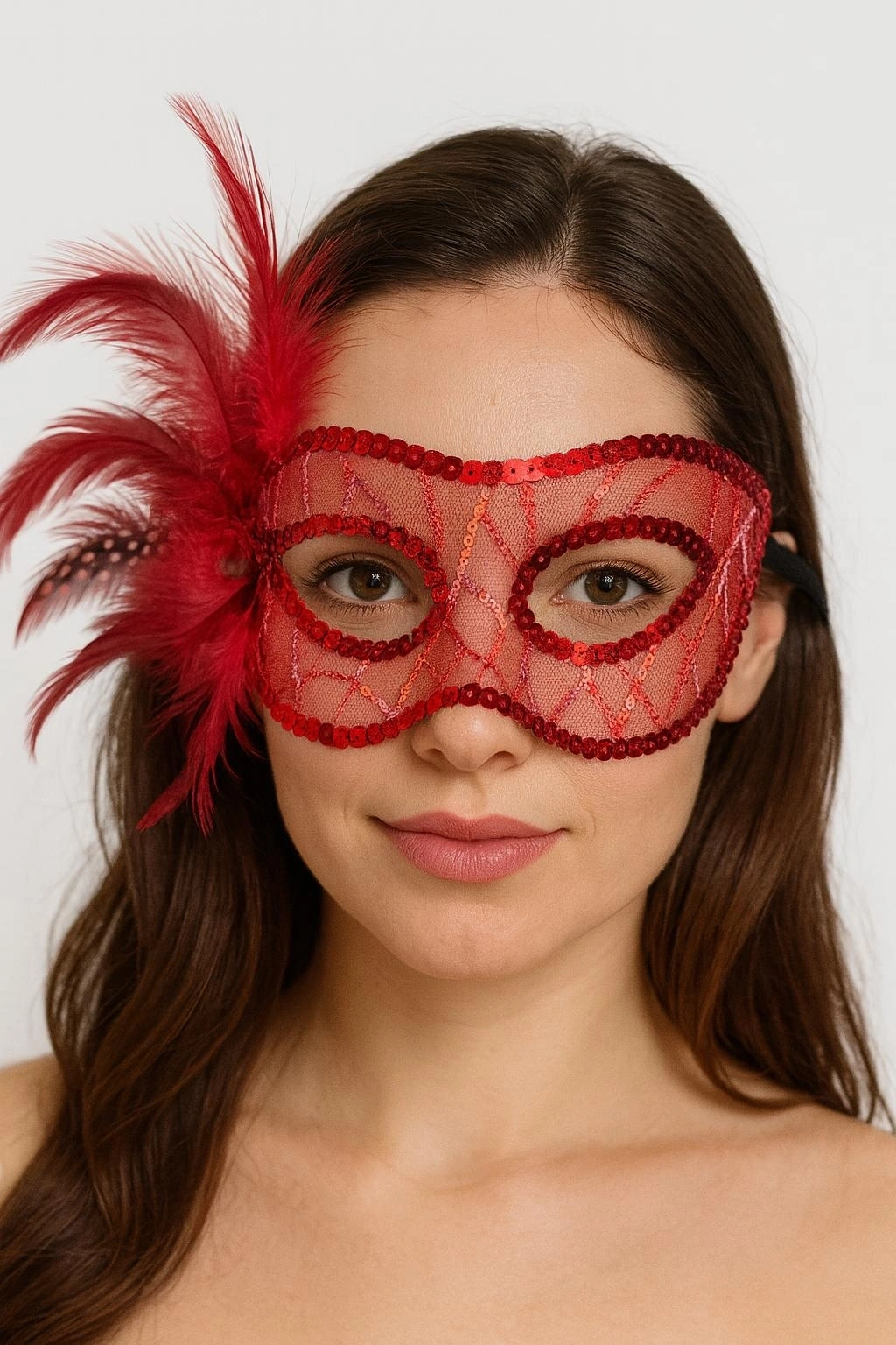 Mey İthalat® Kırmızı Simli Tüylü Balo Maskesi – Kadın Parti & Maskeli Balo Maskesi