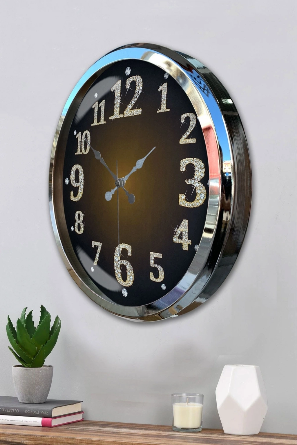 Mey İthalat® Krom Işıltılı Zaman 52 Cm Metal Duvar Saati