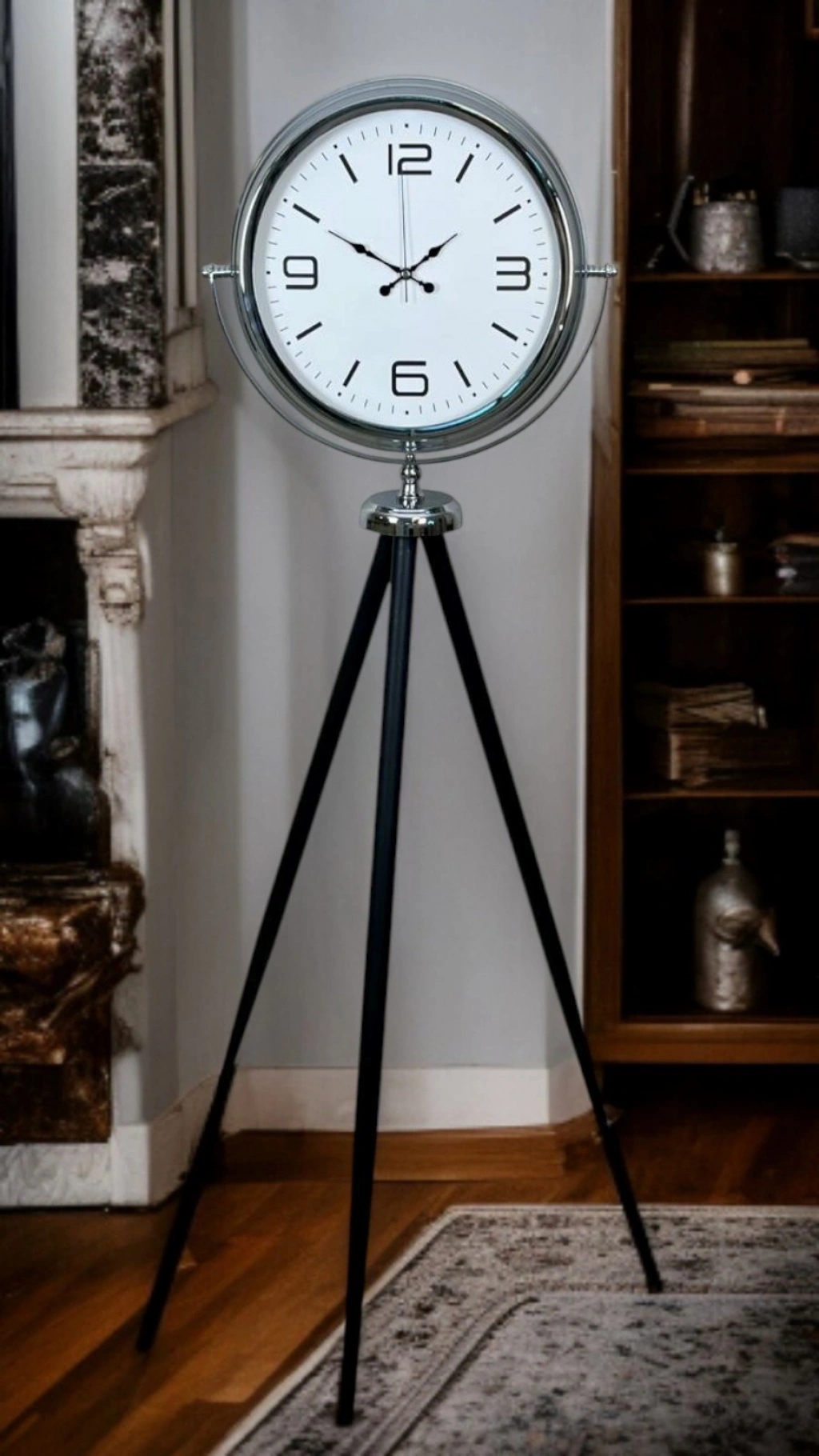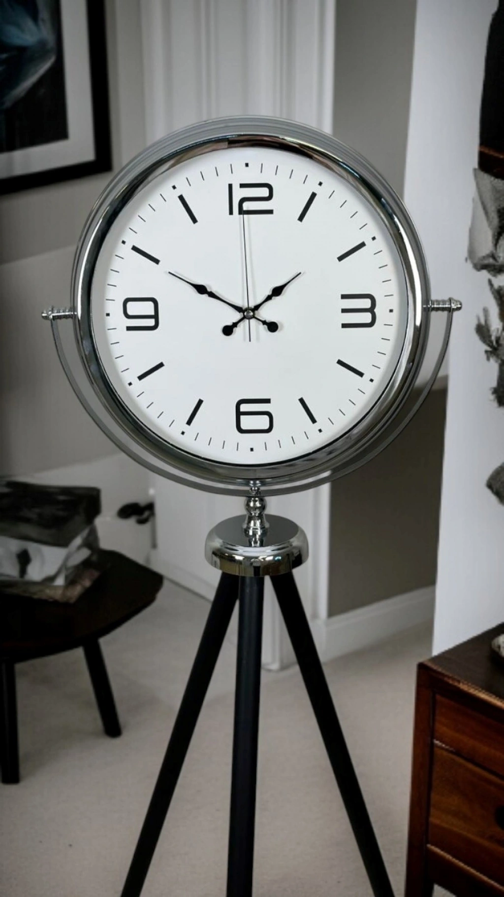 Mey İthalat® Krom Sade & Şık Tripod Ayaklı Saat