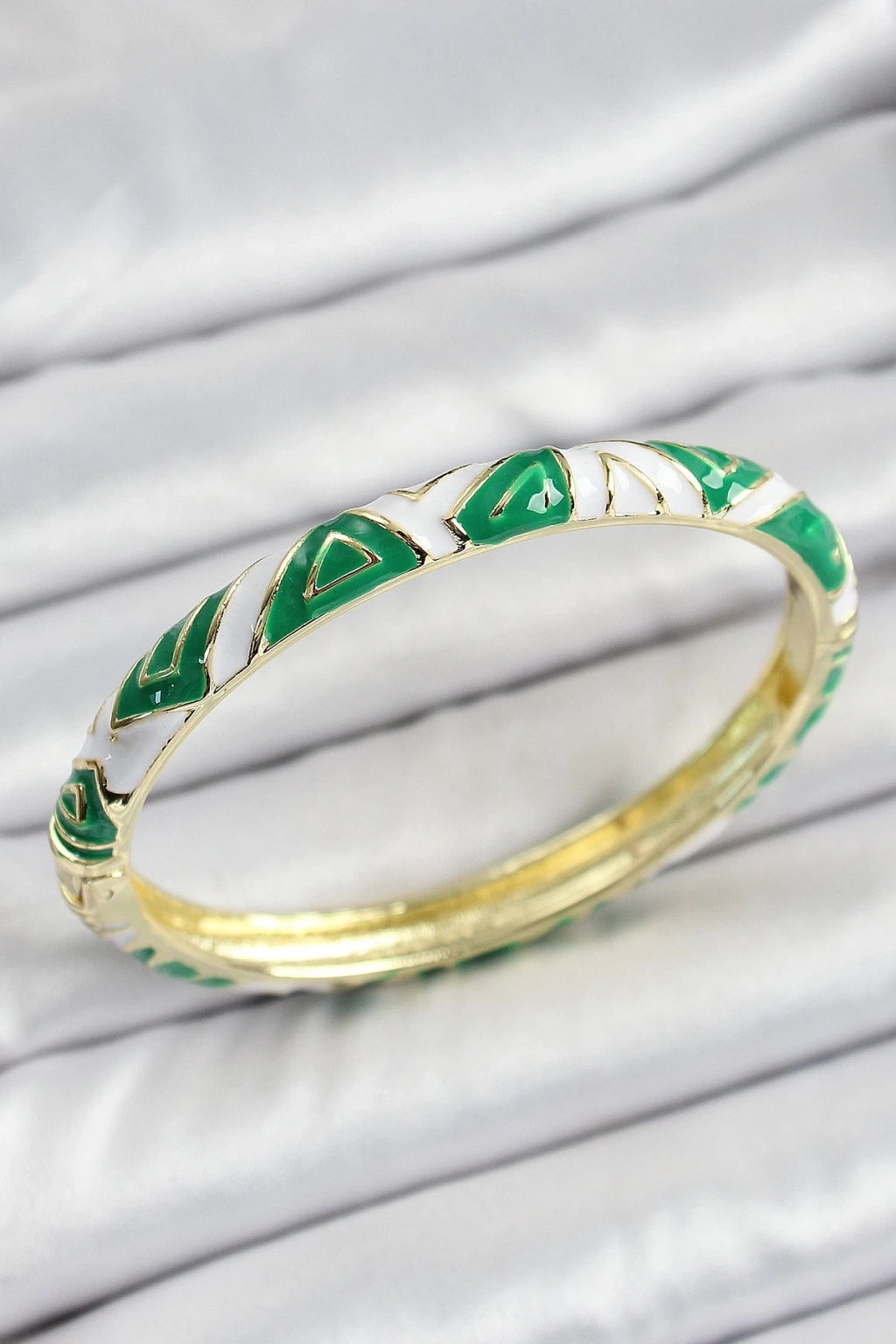 Mey İthalat® Mineli Pirinç Yeşil Beyaz Motifli Kadın Kelepçe