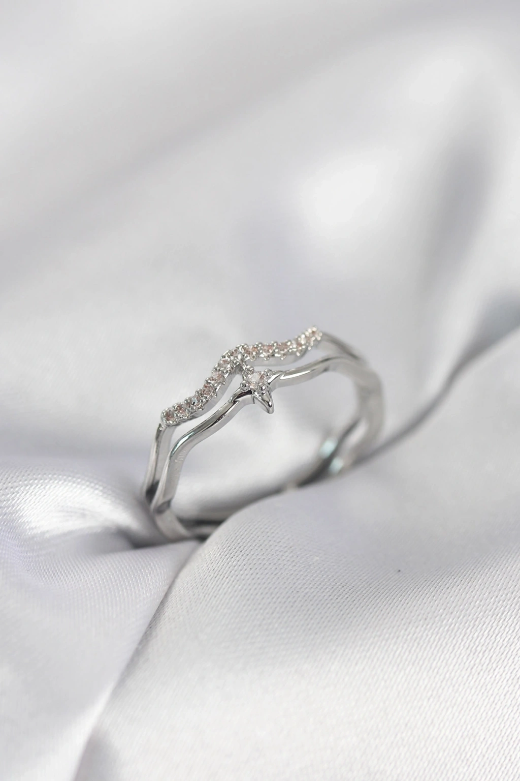 Mey İthalat® Minimal Yıldız Model Gümüş Renk Zirkon Taşlı Kadın Yüzük