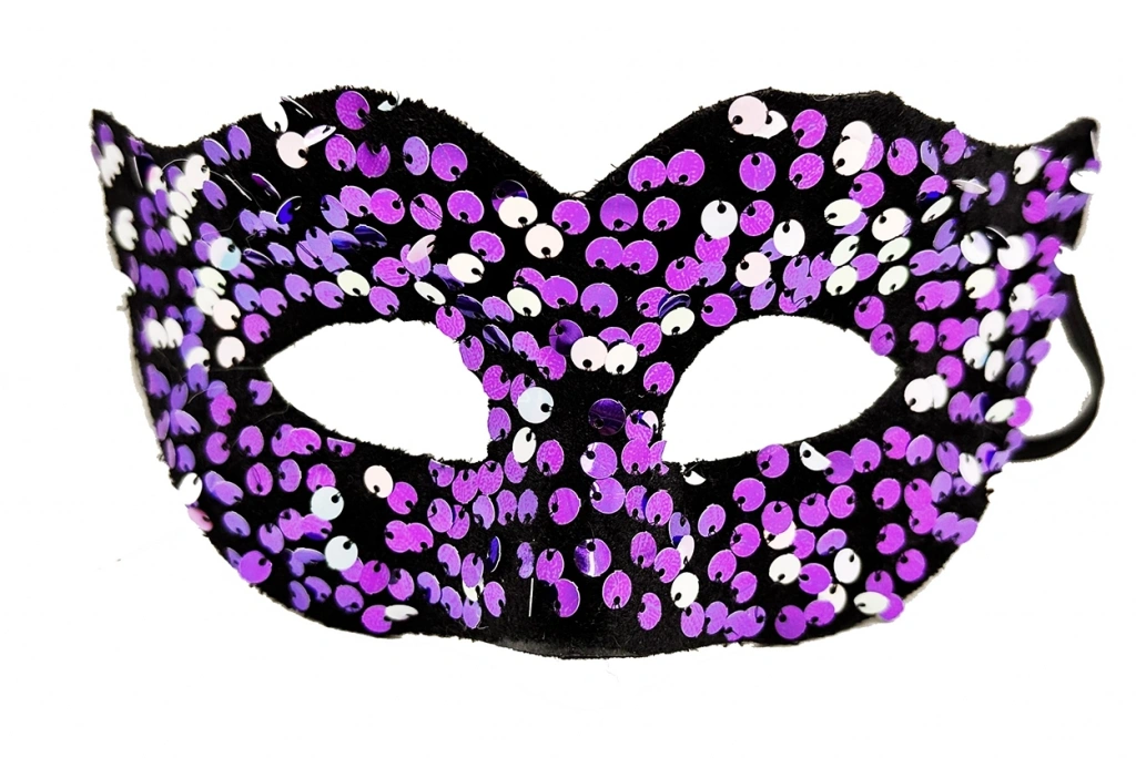 Mey İthalat® Mor Renk Arkadan Lastikli Pul Payet İşlemeli Balo After Parti Maskesi