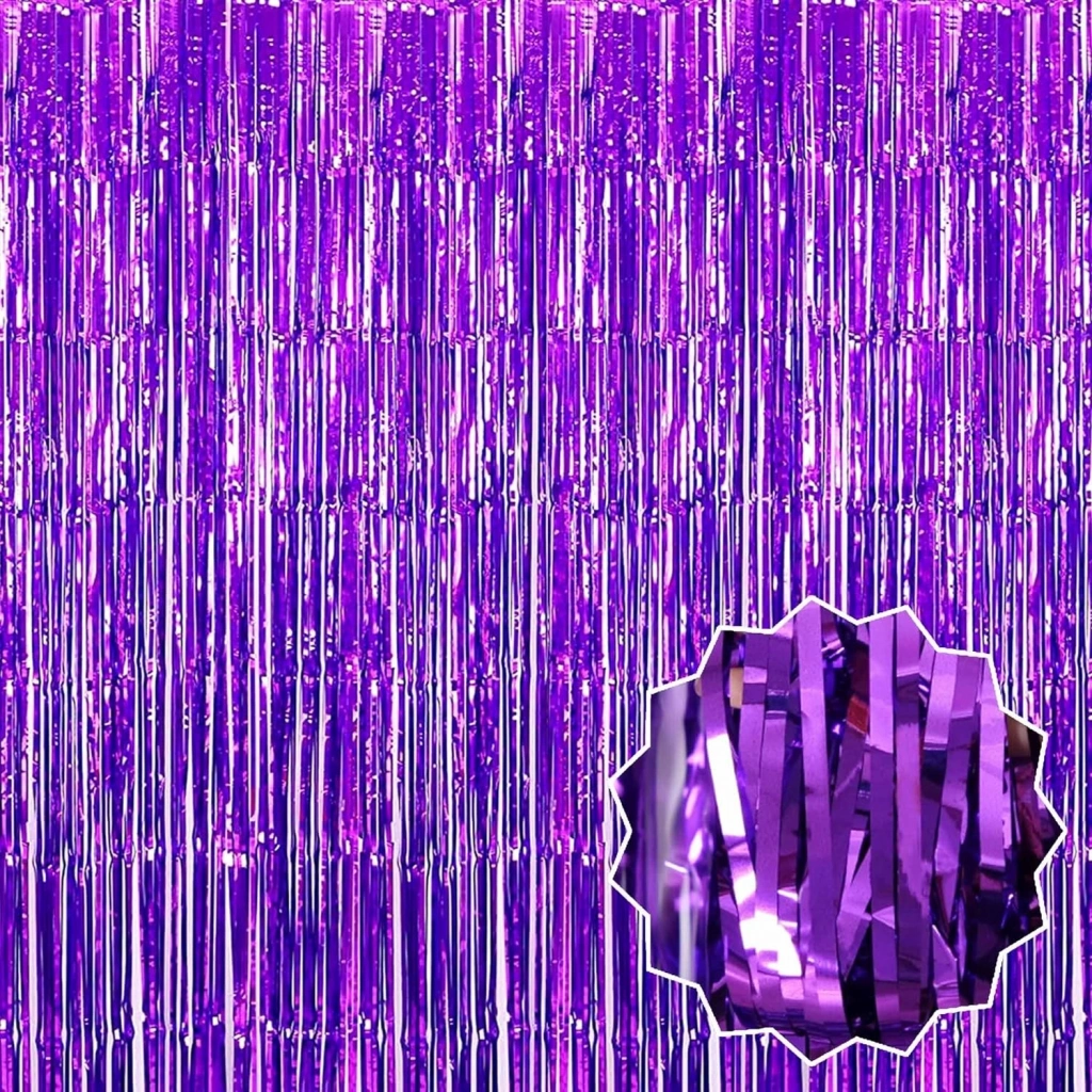 Mey İthalat® Mor Renk Ekstra Metalize Parlak Saçaklı Arka Fon Perde İthal A Kalite 1x2 Metre
