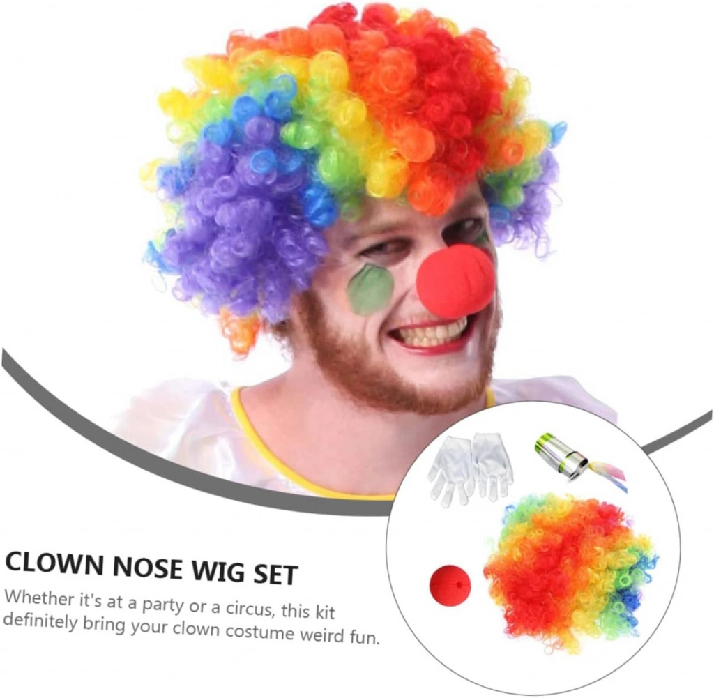 Mey İthalat® Palyaço Saç Palyaço Burun Palyaço Eldiven Palyaço Sihirli Baston 4 lü Seti