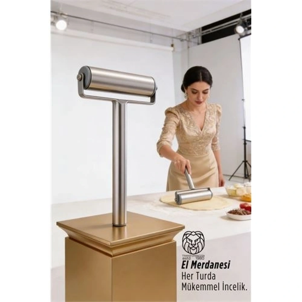 Mey İthalat® Paslanmaz Çelik El Merdanesi: Profesyonel Pizza Mantı ve Hamur Açma Silindiri