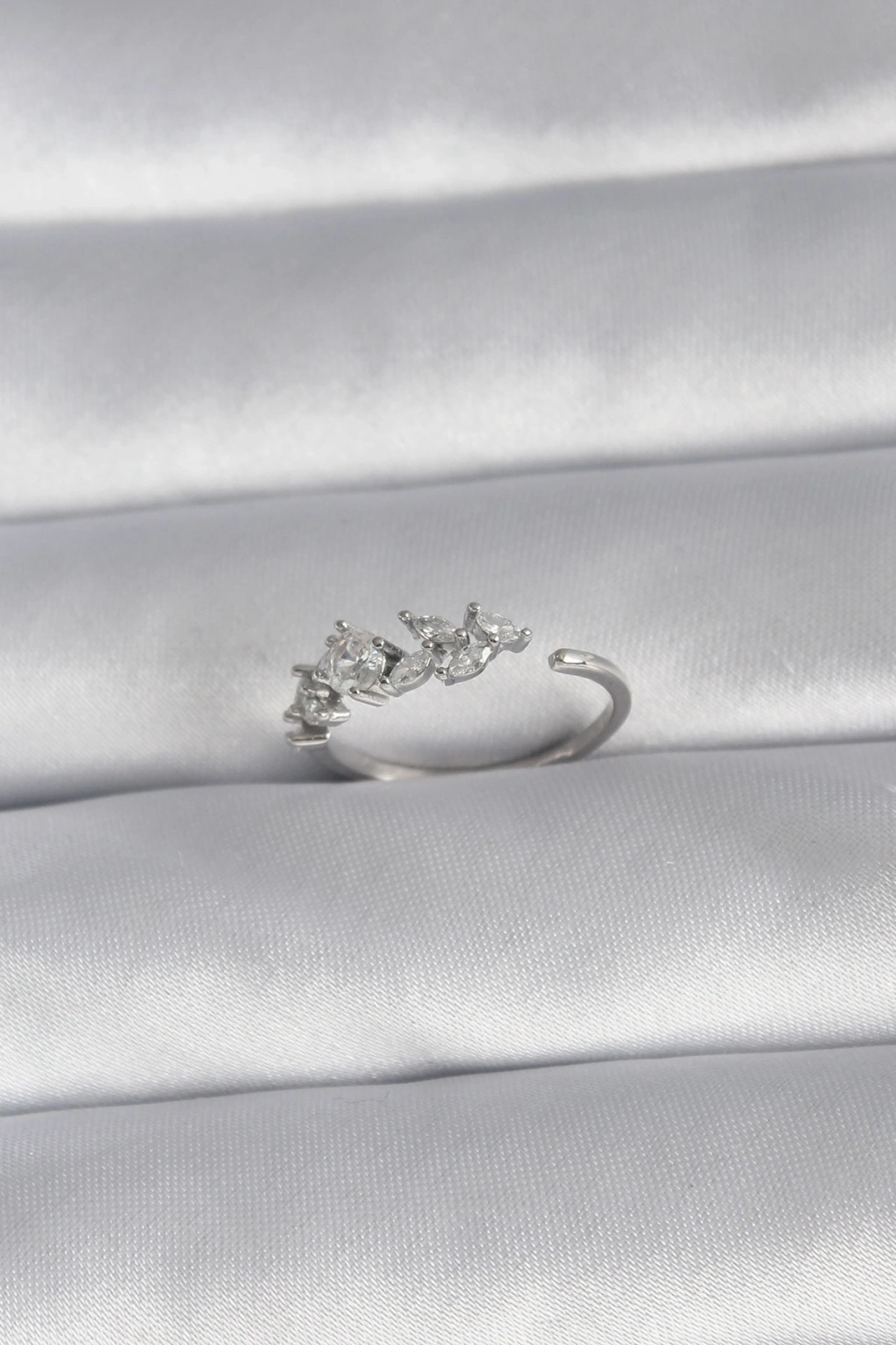 Mey İthalat® Gümüş Renk Metal Taşlı Model Ayarlanabilir Kadın Yüzük