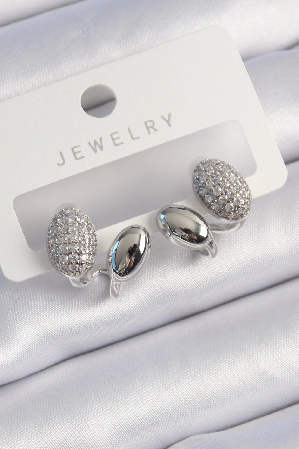 Mey İthalat® Pirinç Gümüş Renk Zirkon Taşlı Kadın Küpe