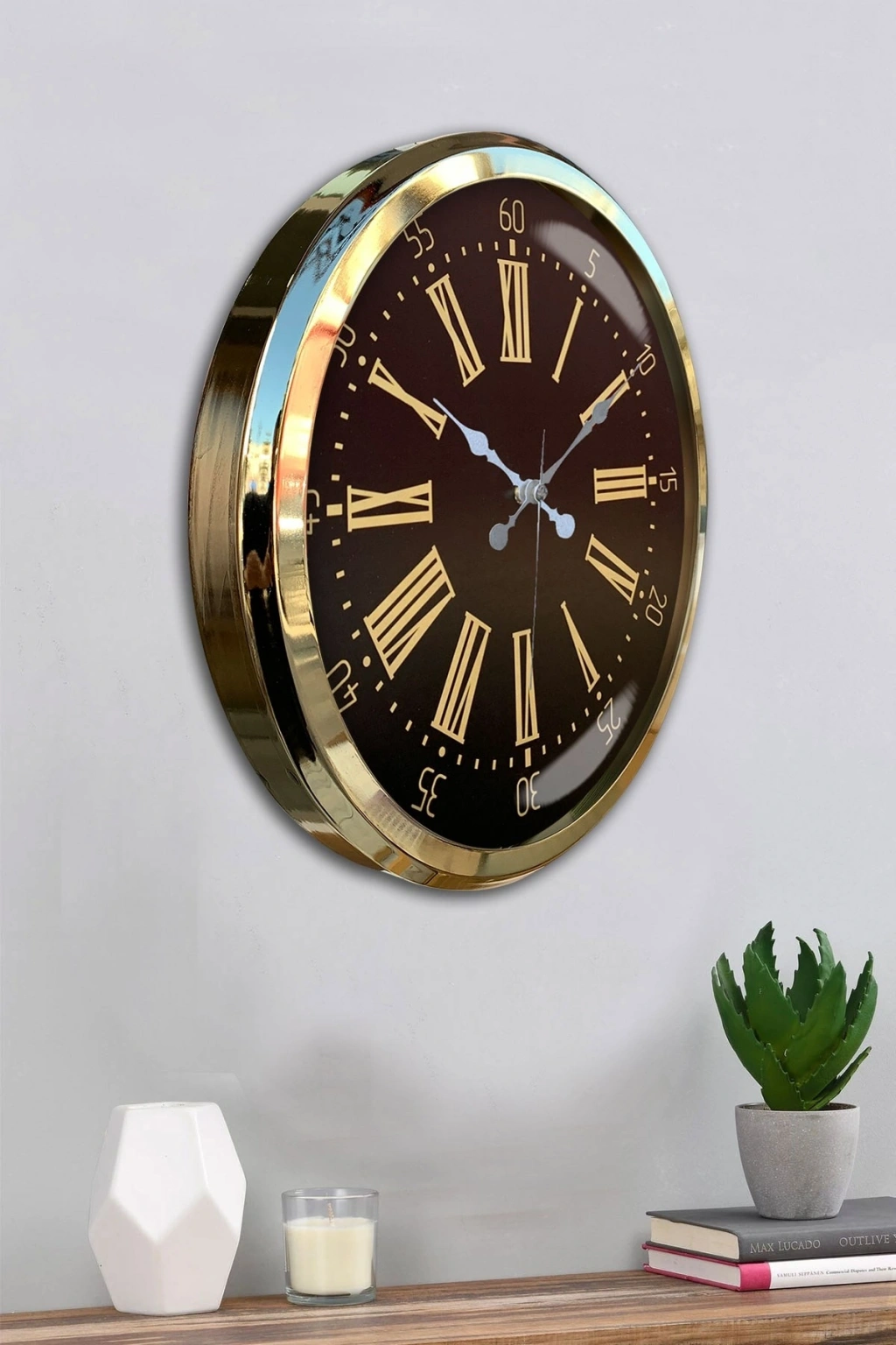 Mey İthalat® Prime Aurea Gold 52 Cm Metal Duvar Saati
