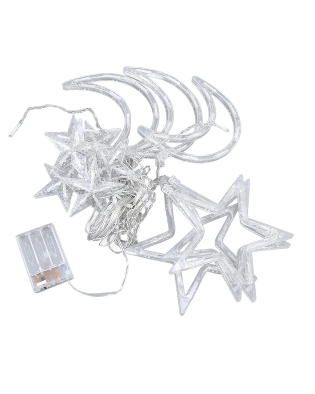 Mey İthalat® 126 LED’li Yıldız Ay Perde Işık Prizden Çalışan Dekoratif Aydınlatma