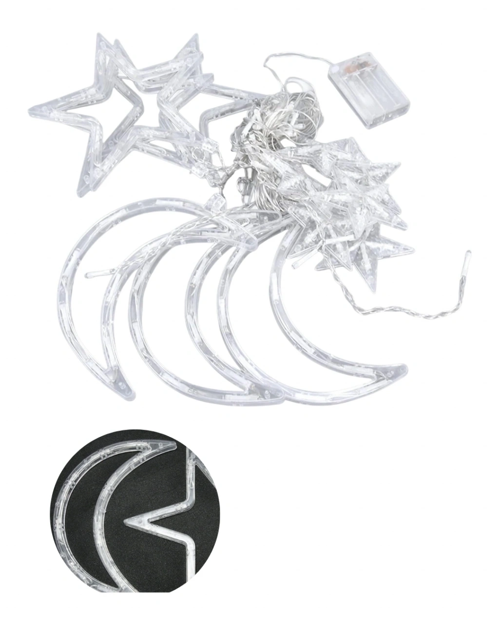 Mey İthalat® Yıldız Ay Tasarımlı Prizli Perde LED Işık İç Mekan Dekoru