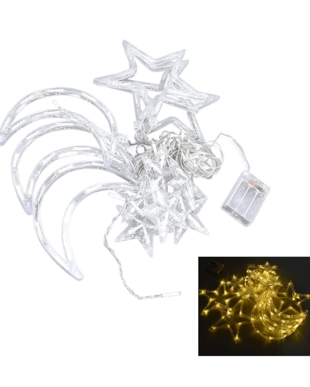 Mey İthalat® 126 LED’li Yıldız Ay Perde Işık Prizden Çalışan Dekoratif Aydınlatma
