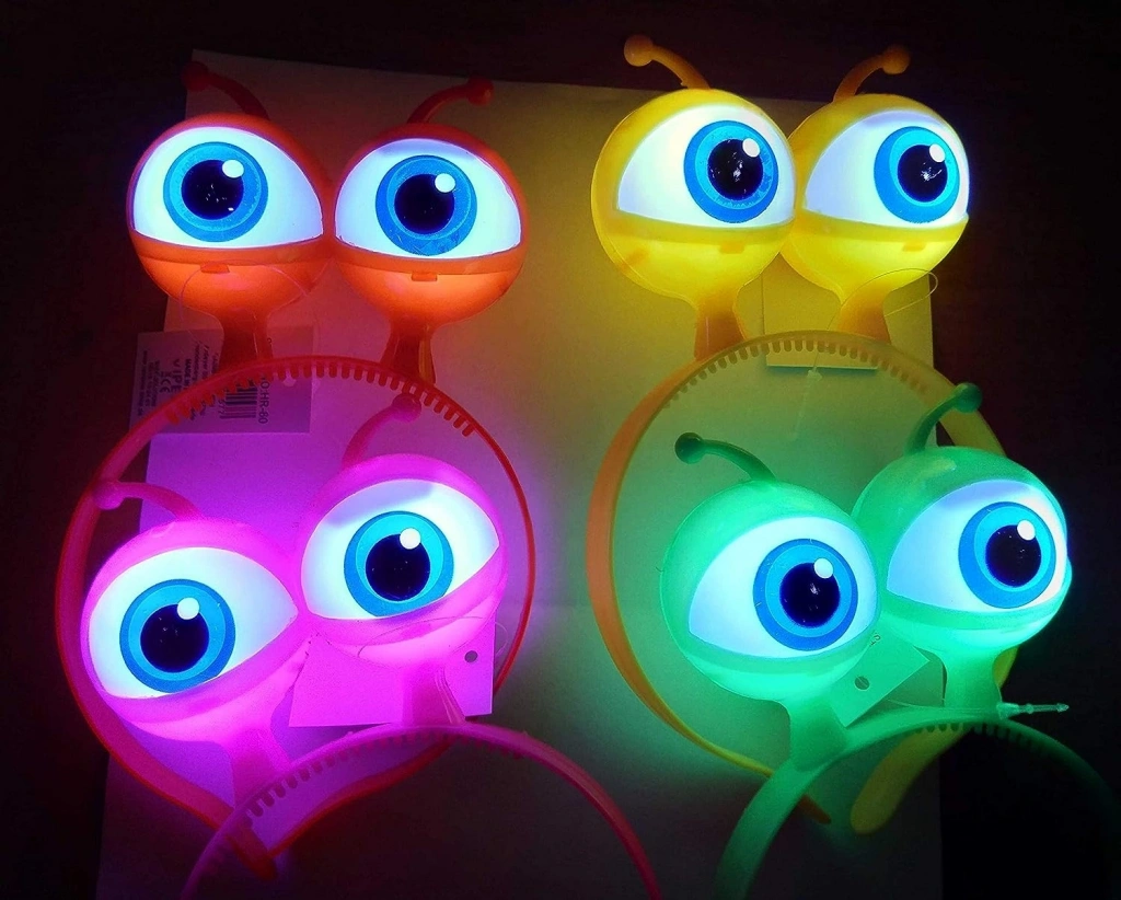 Mey İthalat® Rengarenk 3 Farklı Fonksiyonda Yanan Led Işıklı Uzaylı Göz Taç 1 Adet 18x12 cm