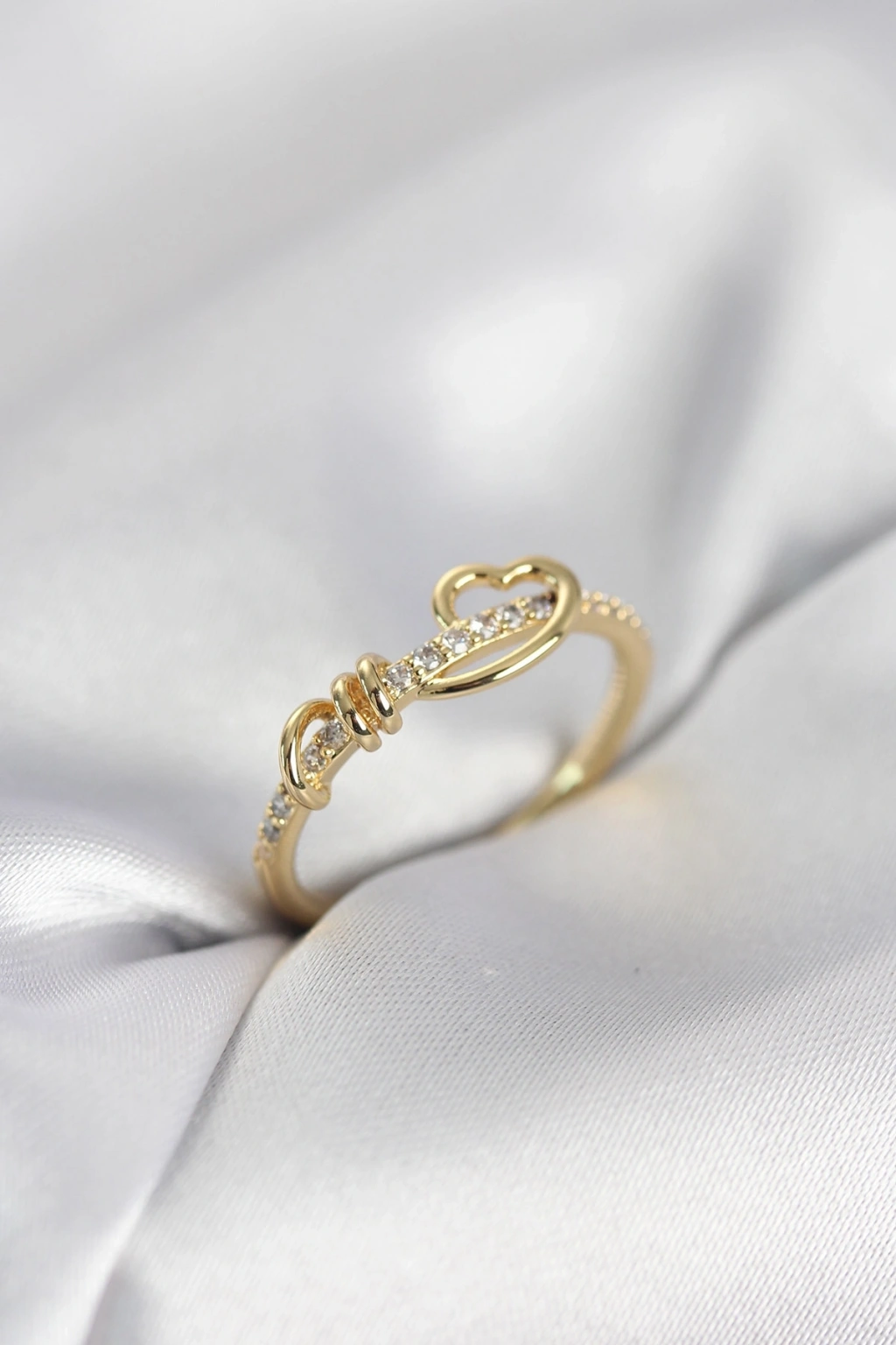 Mey İthalat® Pirinç Gold Renk Zirkon Taşlı Kalpli Model Ayarlanabilir Yüzük