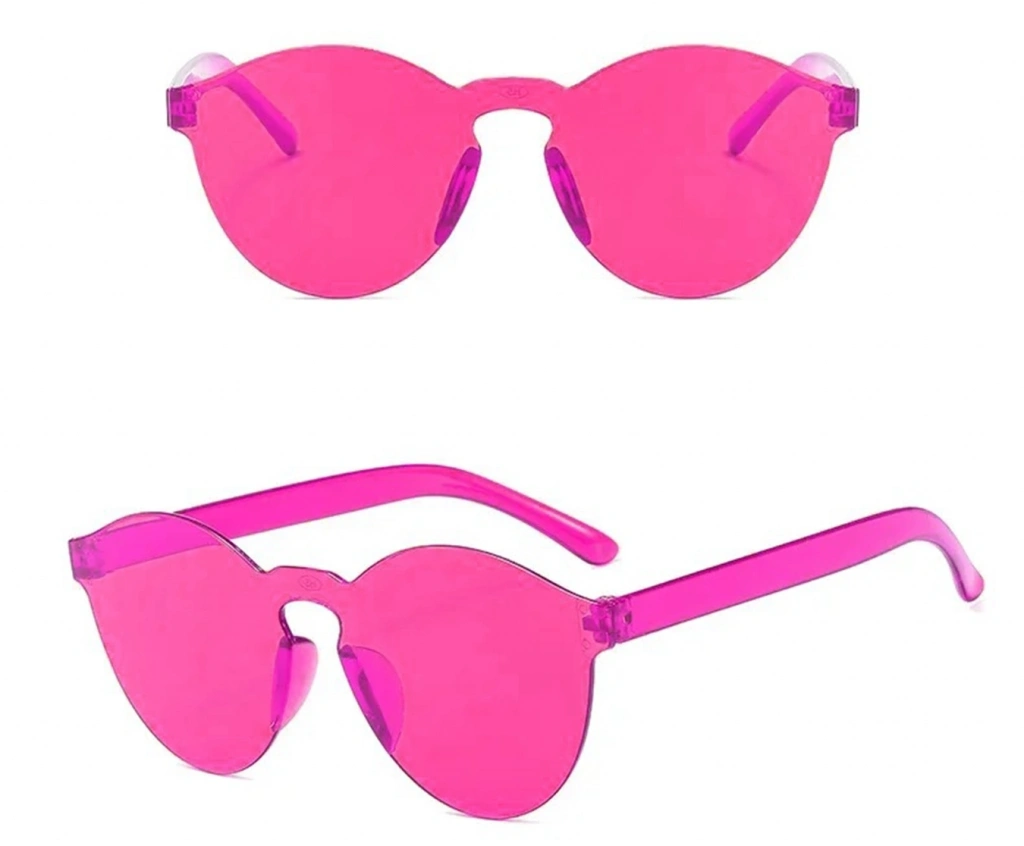 Mey İthalat® Sert Mika Oval Şekilli Çerçevesiz Fuşya Gözlük Retro Parti 5x14 cm