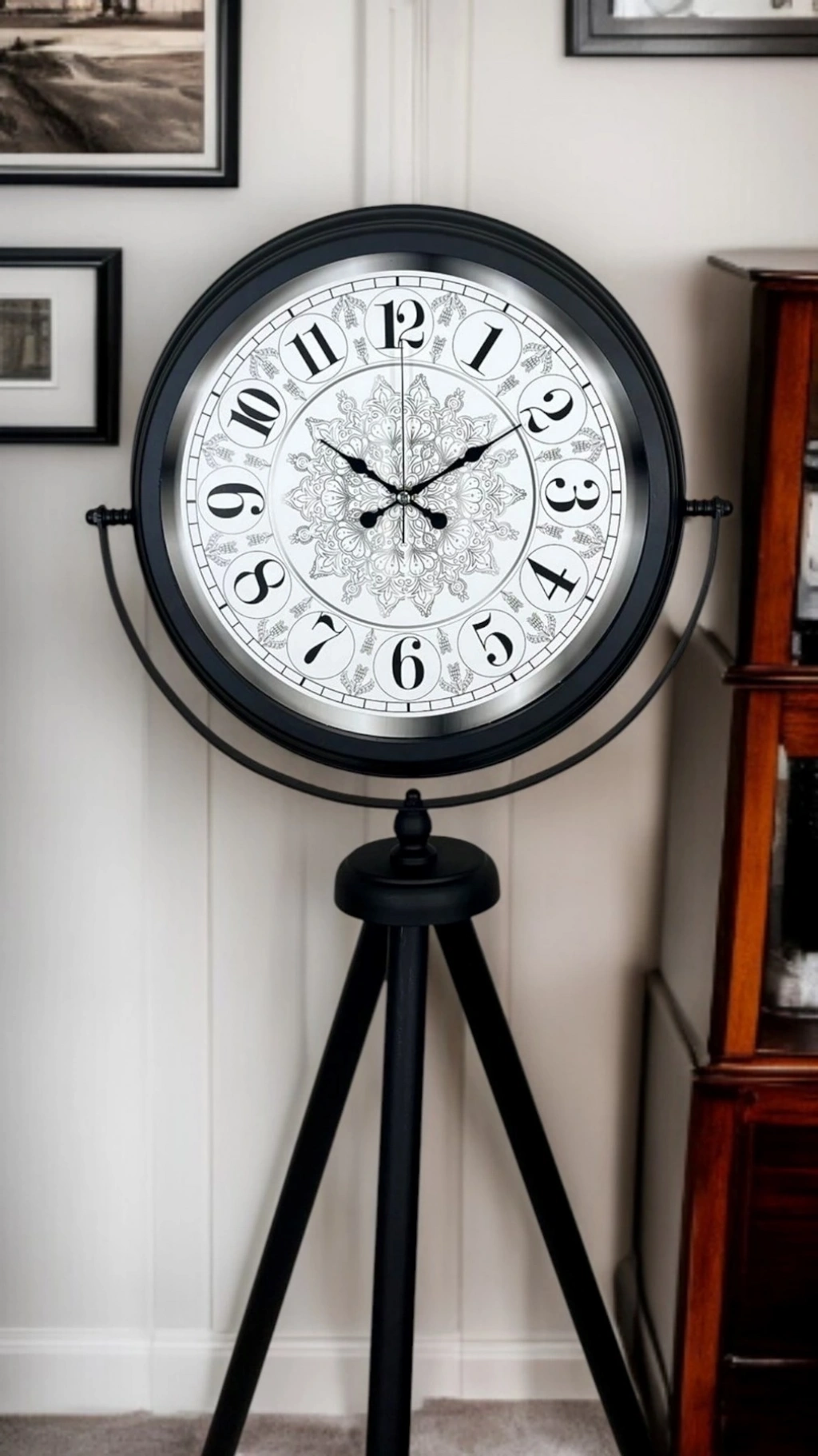 Mey İthalat® Siyah Desenli Şık Tripod Ayaklı Saat