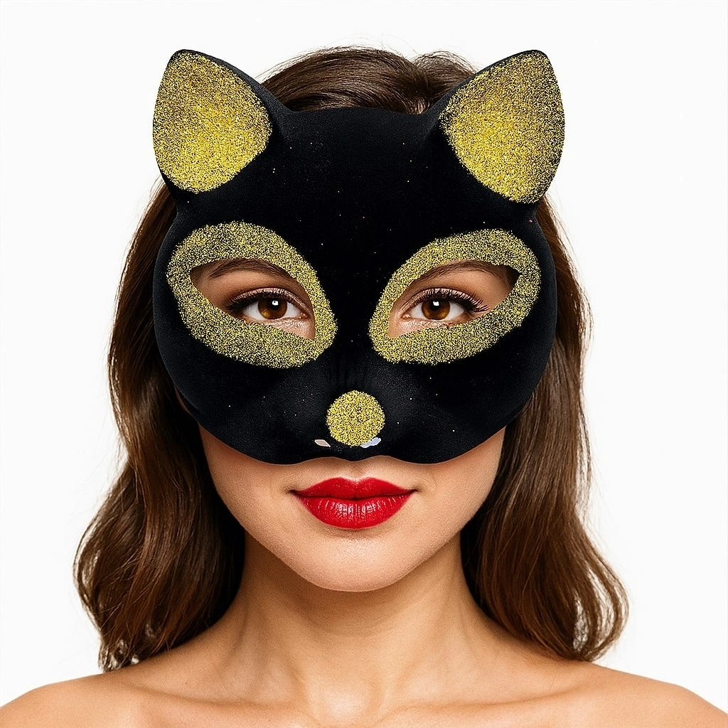 Mey İthalat® Siyah Renk Gold Simli Süet Kaplama Kedi Maskesi 18x14 cm