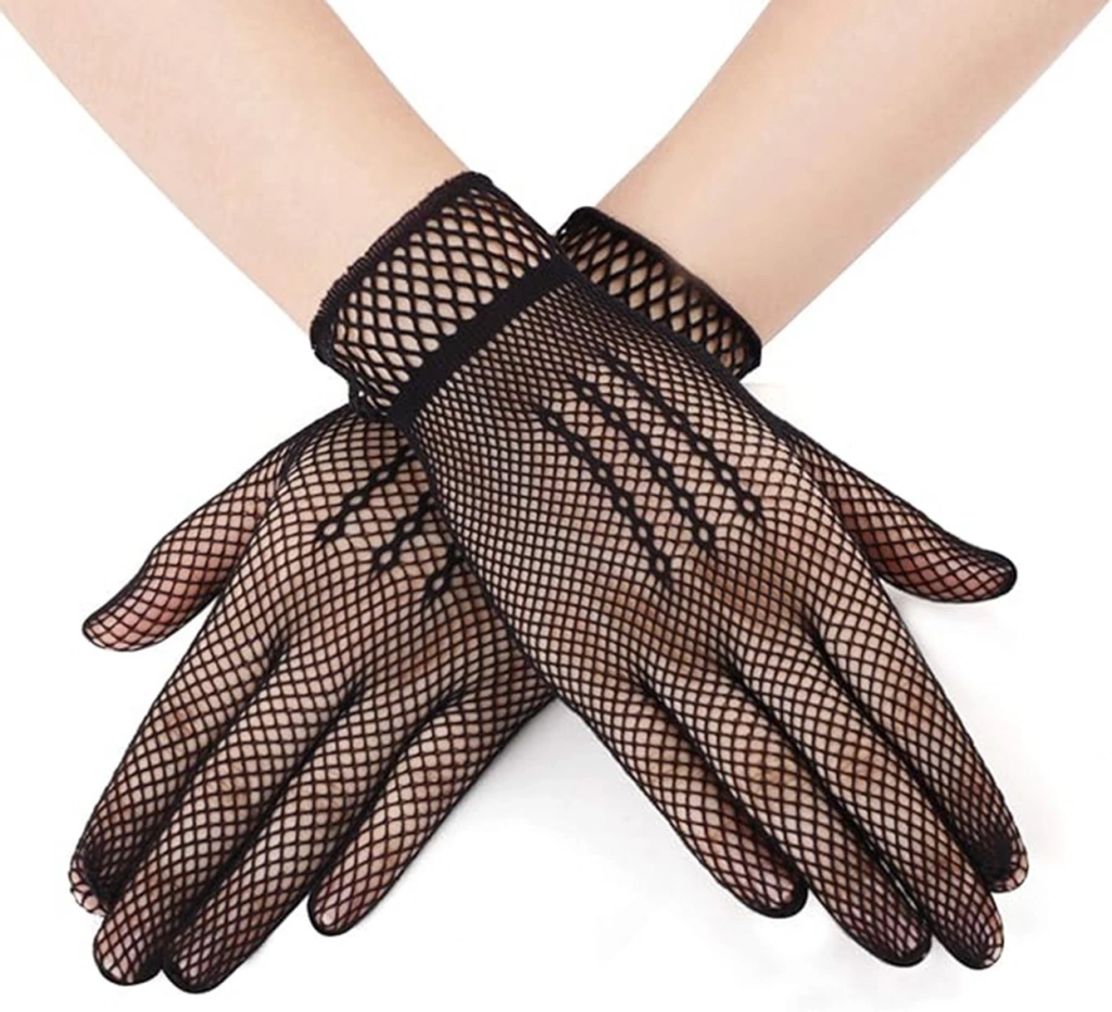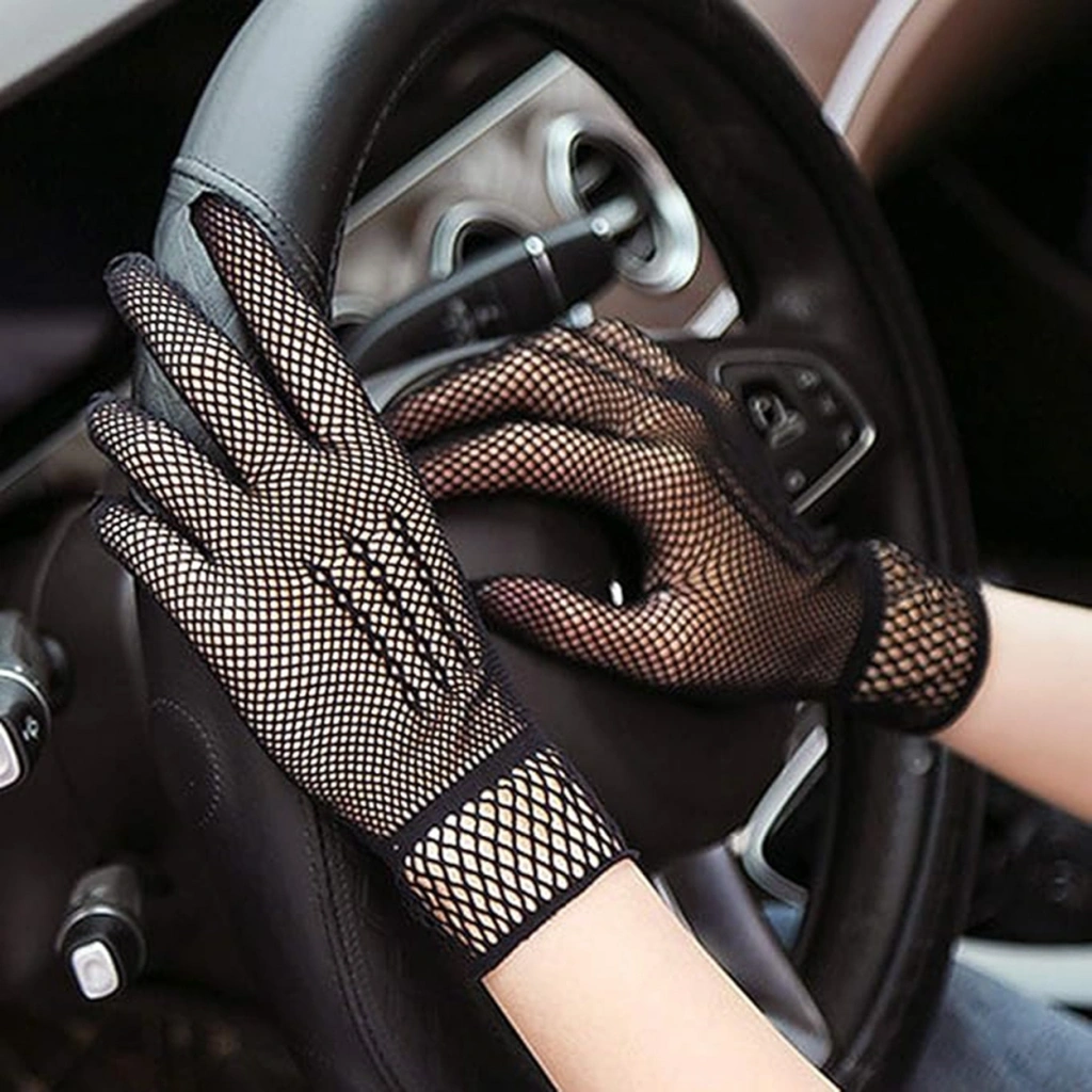 Mey İthalat® Siyah Renk Likralı File Eldiven Parmaklı Örgü Eldiven Yetişkin Boy