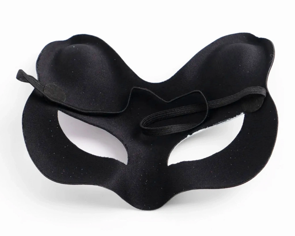 Mey İthalat® Siyah Renk Süet Kaplama Üzeri Mavi Kırmızı Simli Kedi Maskesi 17x14 cm