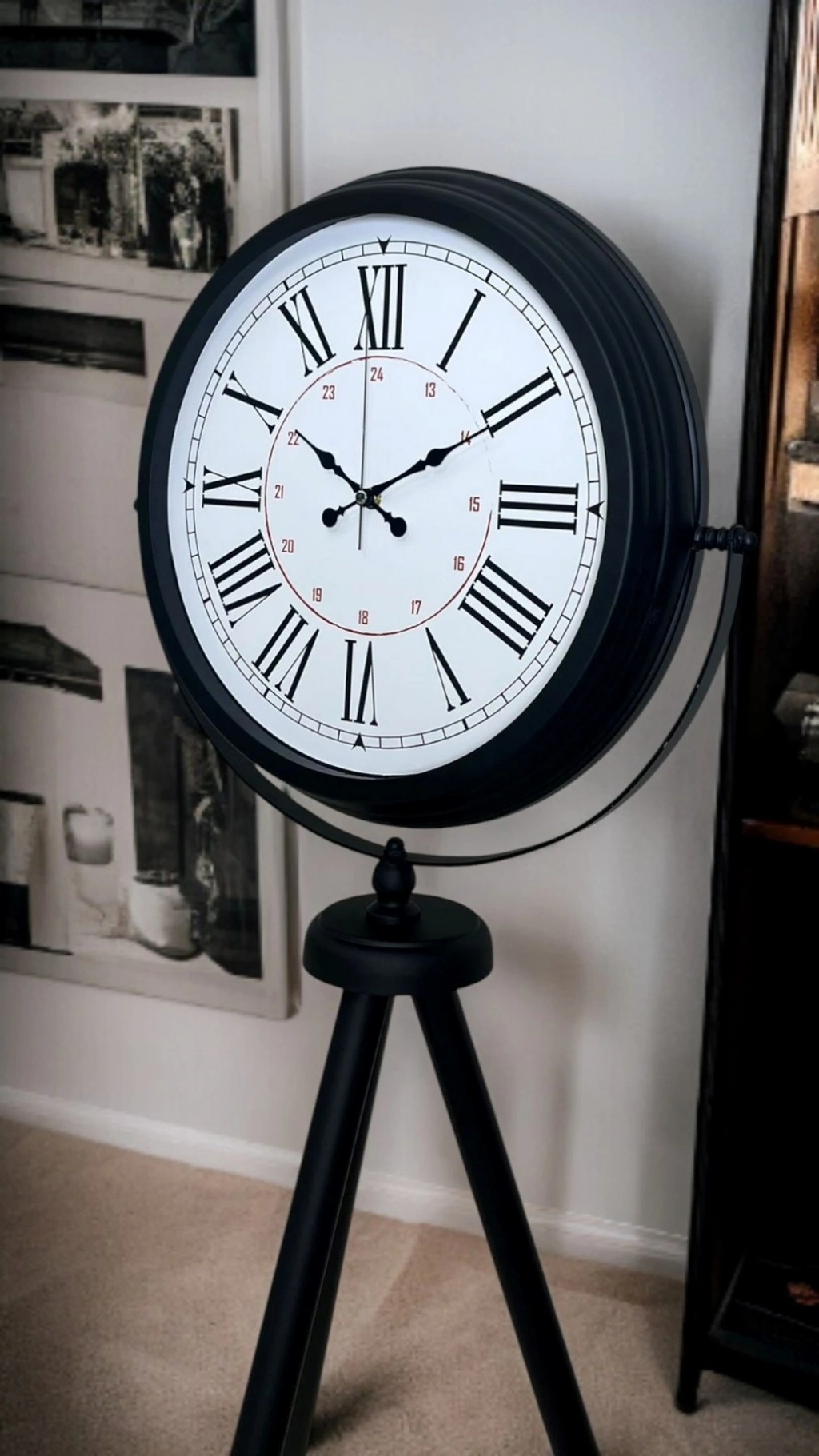 Mey İthalat® Siyah Roma Rakamlı Lüks Tasarım Tripod Ayaklı Saat