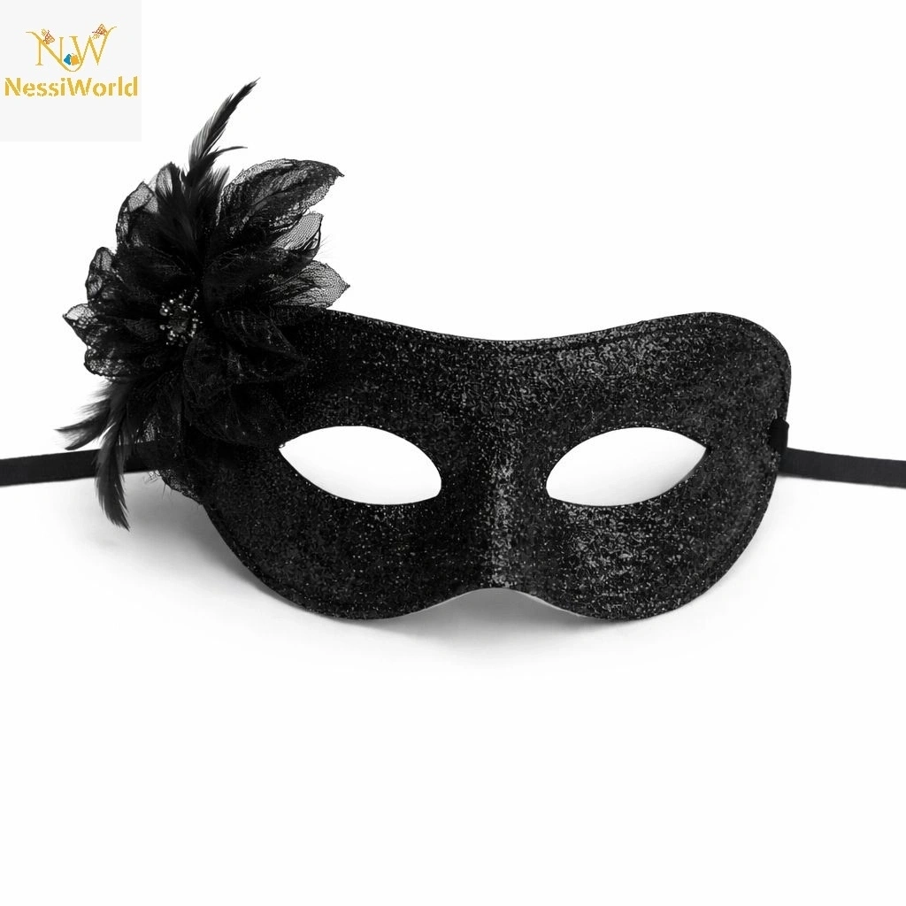Mey İthalat® Siyah Venedik Parti Maskesi – Çiçekli Tüylü Payetli