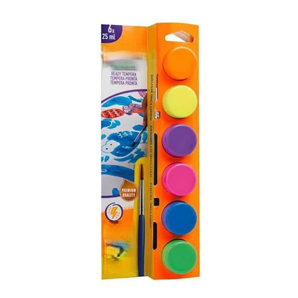 Mey İthalat® Yıkanabilir Sulu Boya 25 ml x 6 Renk Fırçalı Set