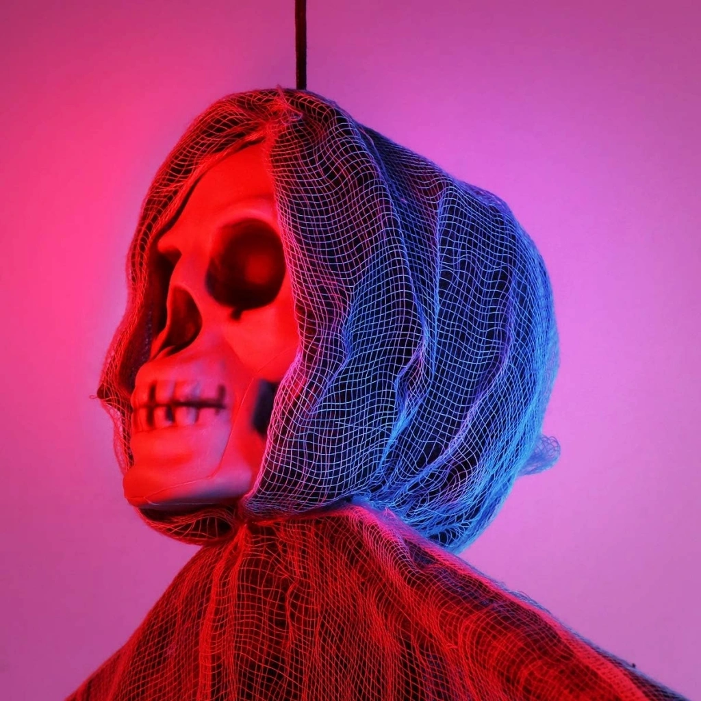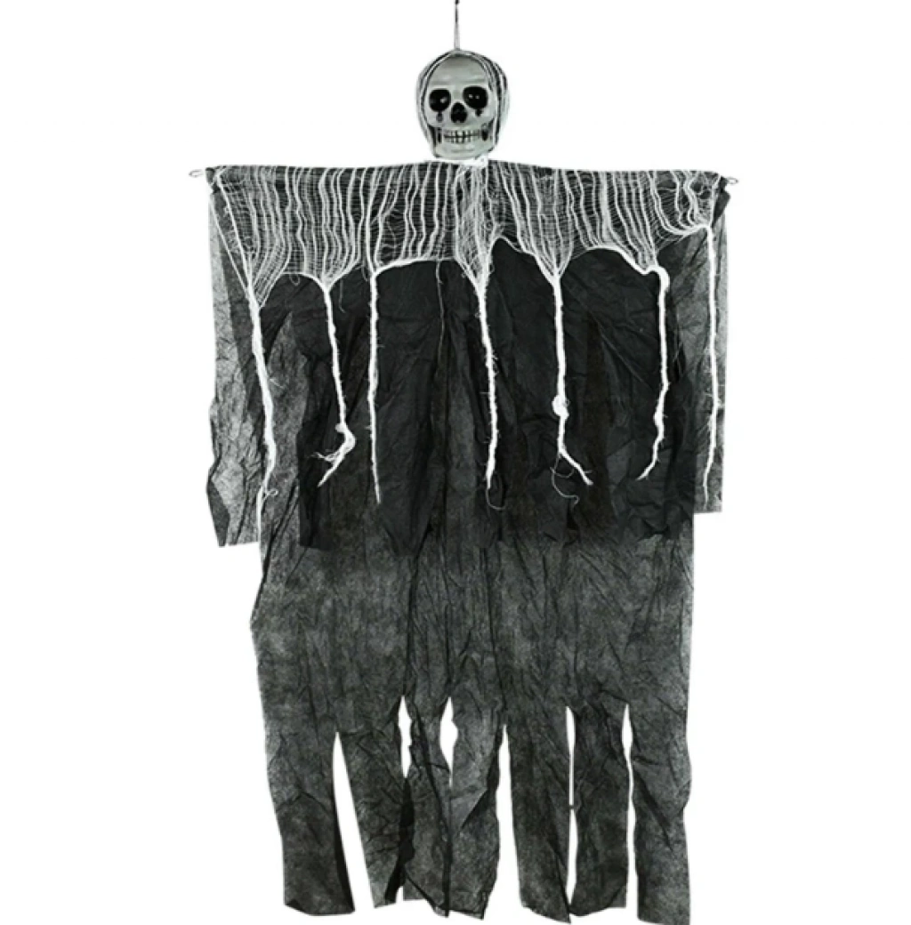 Mey İthalat® Ürpertici Kuru Kafa Korku Hayalet Saçaklı Dekor 90x50 cm