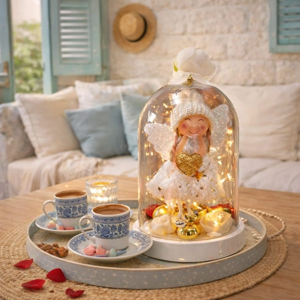 Mey İthalat® Venüs ışıltısı Led Işıklı Melek Fanus