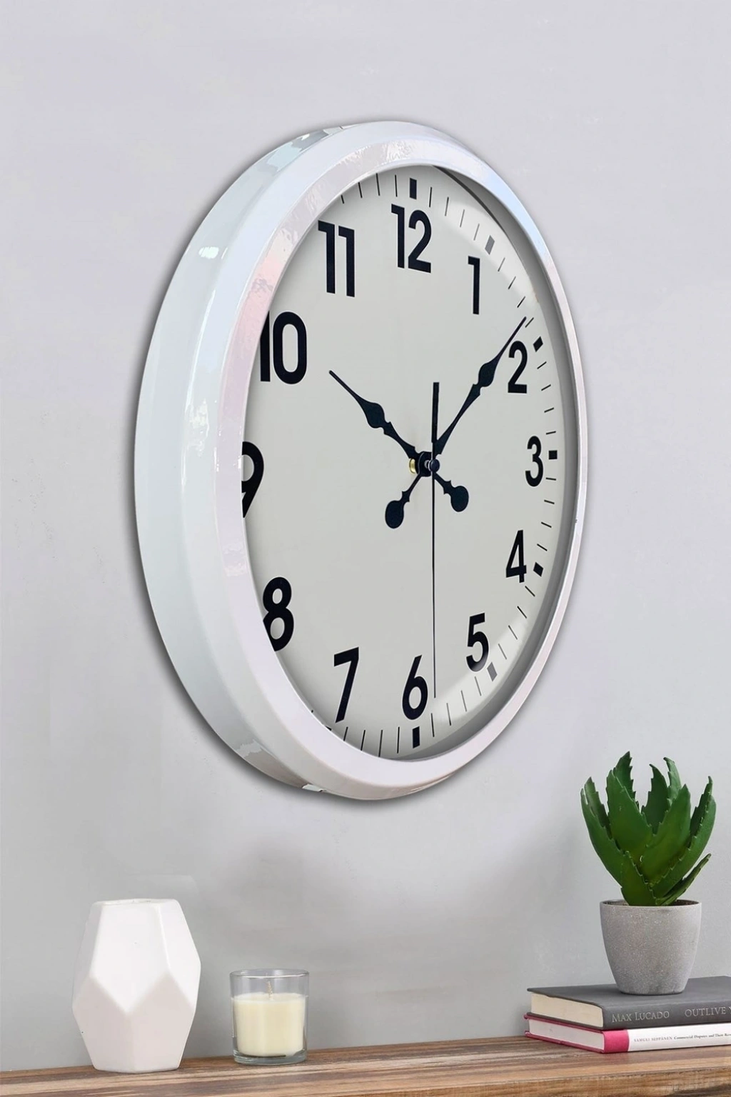Mey İthalat® White Classic Modern 52 Cm Metal Duvar Saati