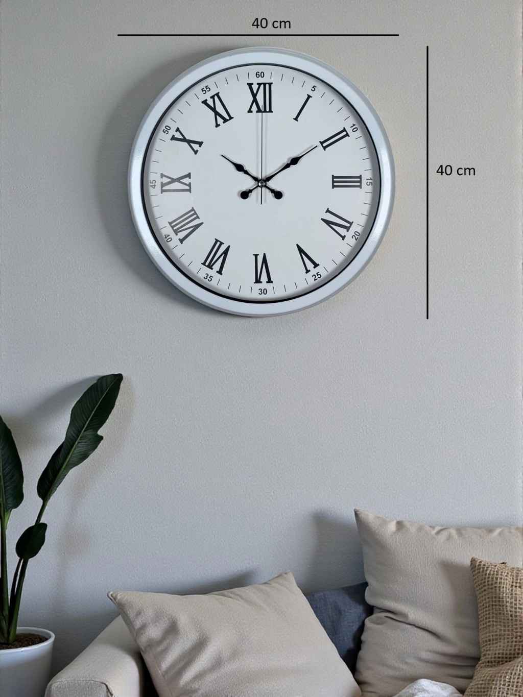 Mey İthalat® White Prime Roma Rakamlı 40 Cm Metal Duvar Saati