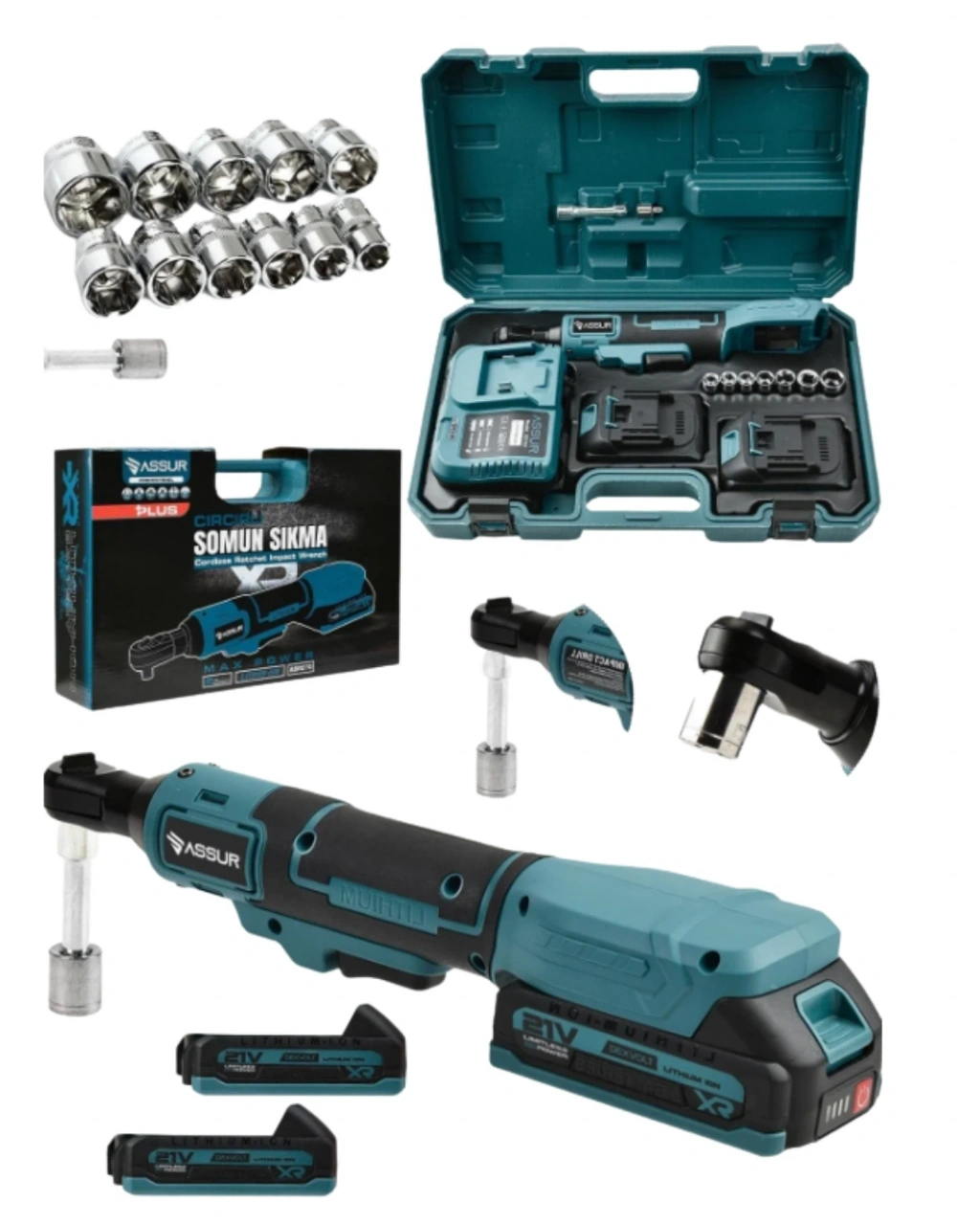 Mey İthalat® Yandan Sıkma Somun Uyumlu Akülü Cırcır Kolu 21V Güçlü Tork