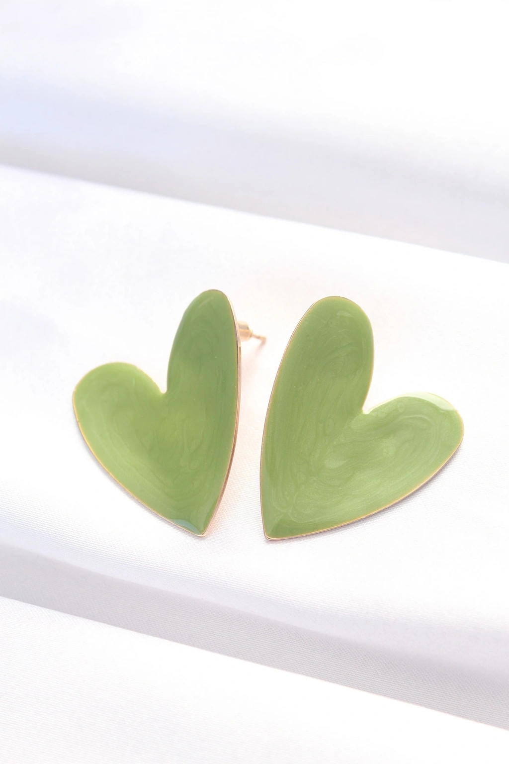Mey İthalat® Yeşil Renk Mineli Kalp Küpe