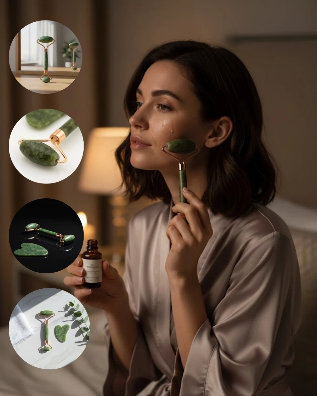 Mey İthalat® Doğal Yeşim Roller ve Gua Sha Yüz Şekillendirme Seti