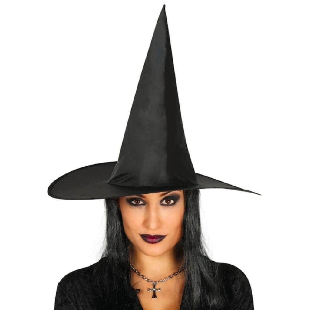 Mey İthalat® Yetişkin Boy Siyah Cadı Şapkası ve Uzun Siyah Cadı Peruğu